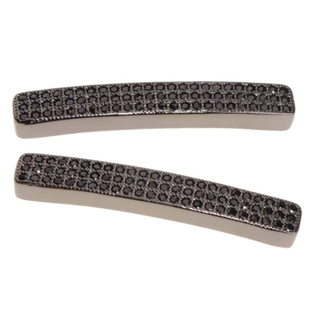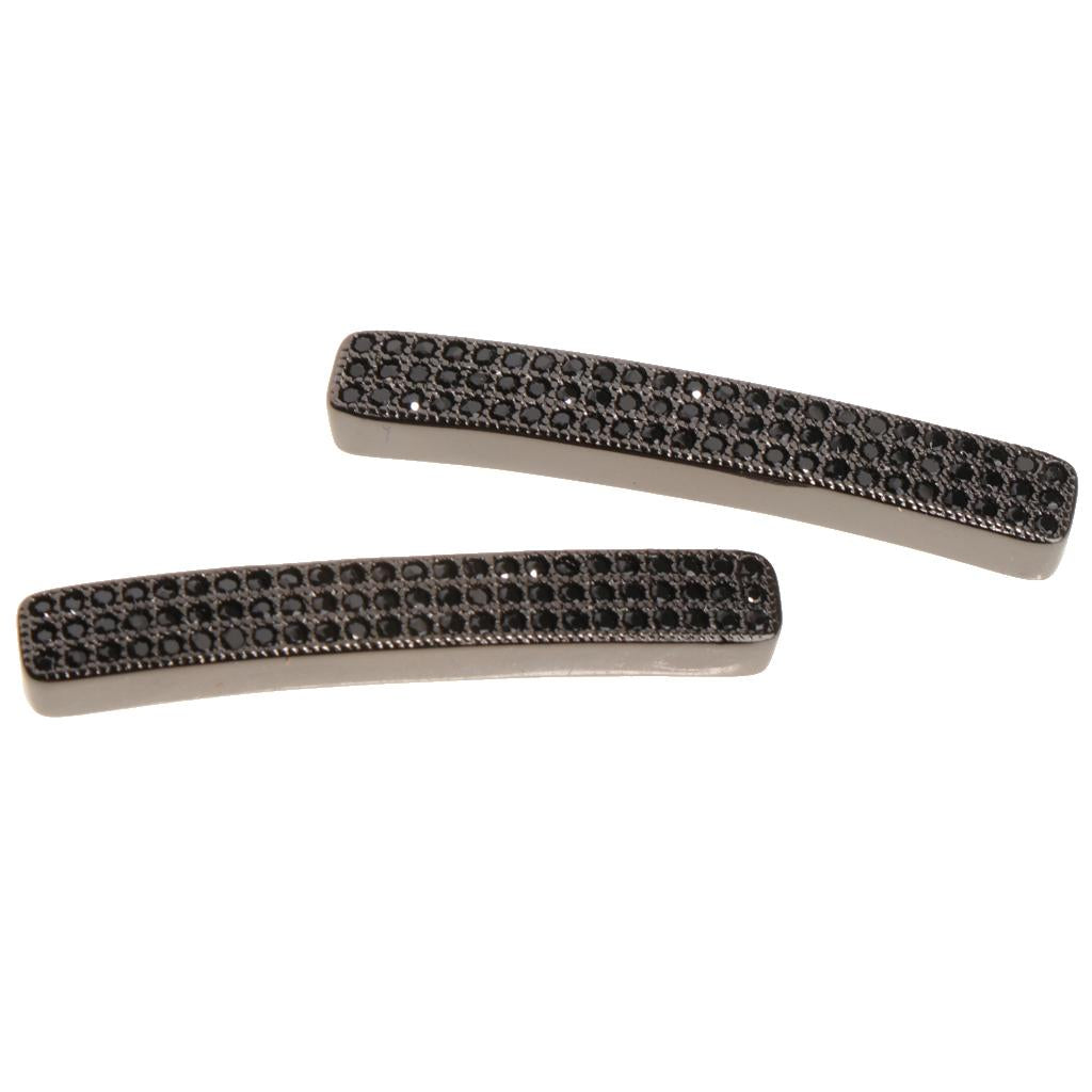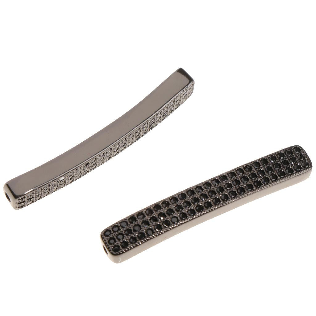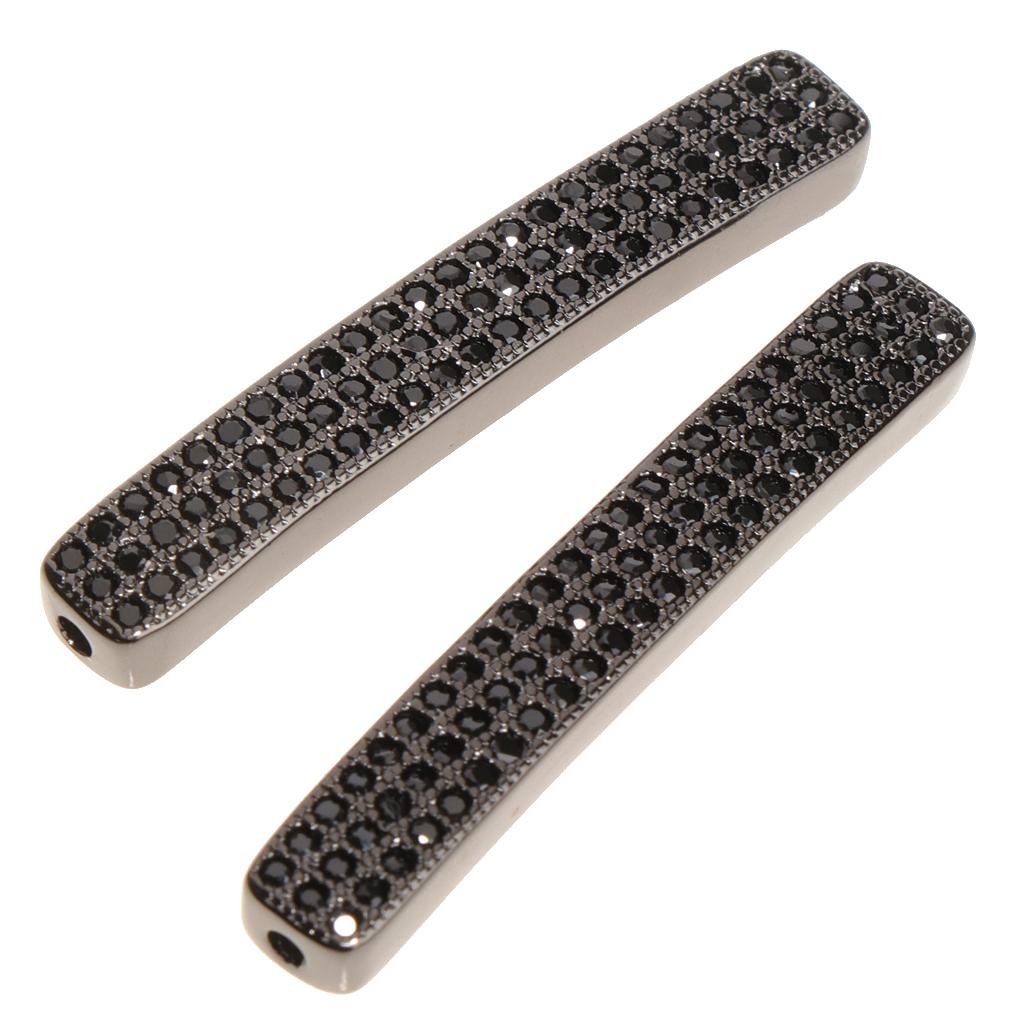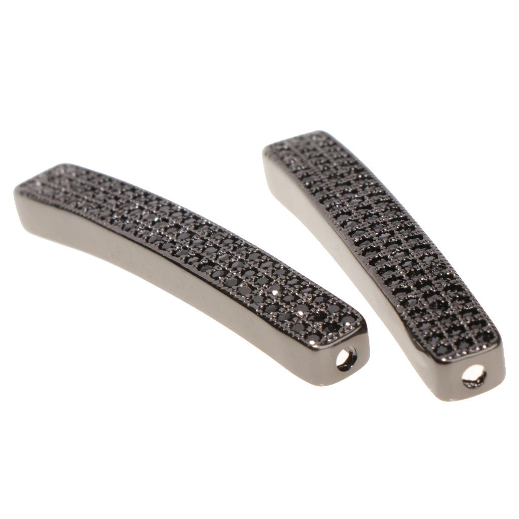 Maxbell Fashion Loose Long Flat Spacer Beads DIY Bracelet Black zircon