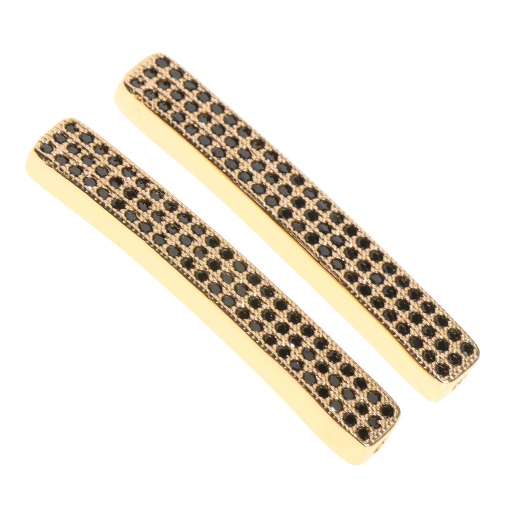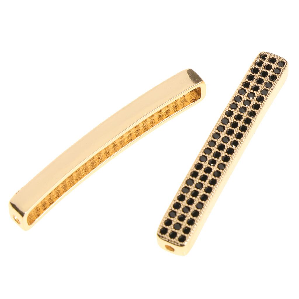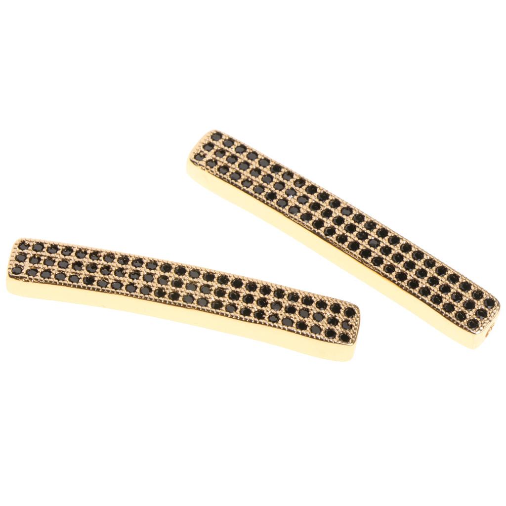 Maxbell Fashion Loose Long Flat Spacer Beads DIY Bracelet Gold Black zircon