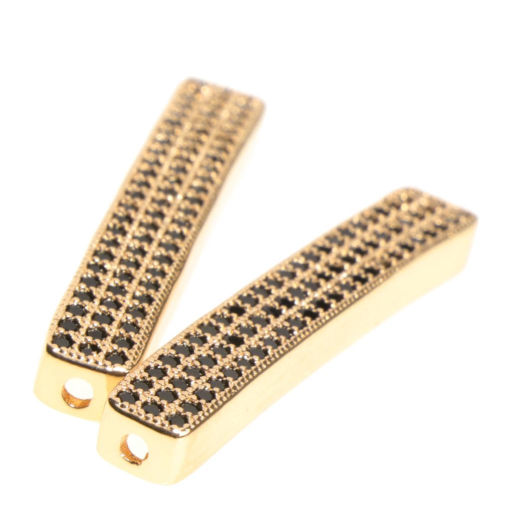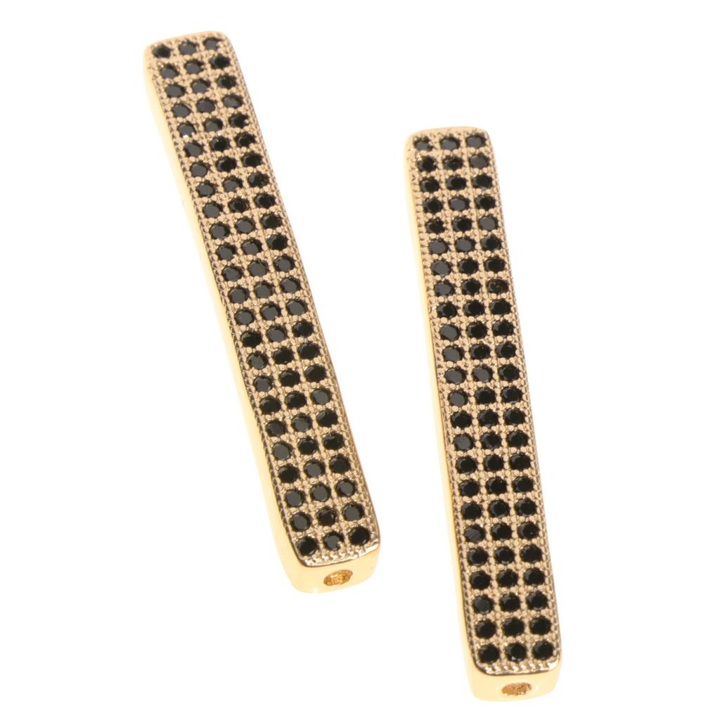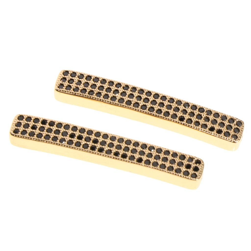 Maxbell Fashion Loose Long Flat Spacer Beads DIY Bracelet Gold Black zircon