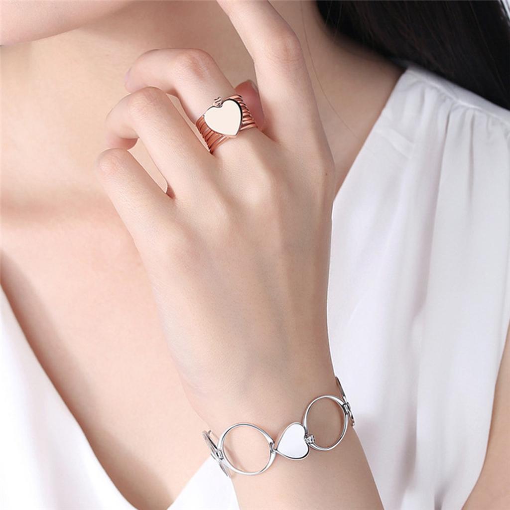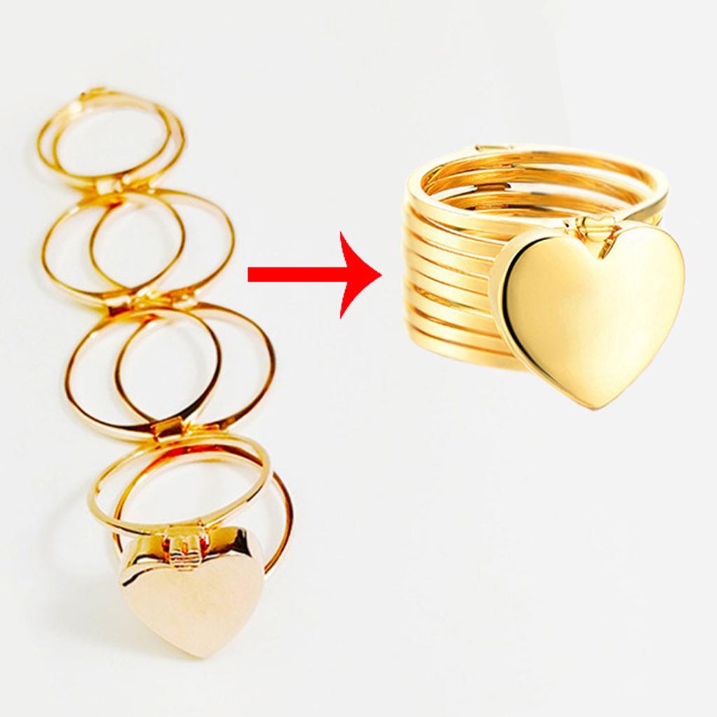 Maxbell Fashion Retractable Bangle Heart Foldable Finger Ring Bracelet Gold