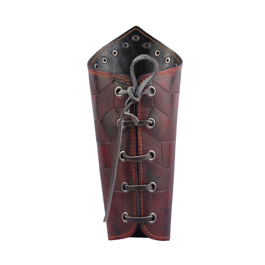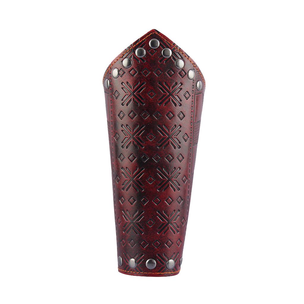 Maxbell Faux Leather Arm Guards Medieval Lace Up Punk Men Women Arm Bracers Red