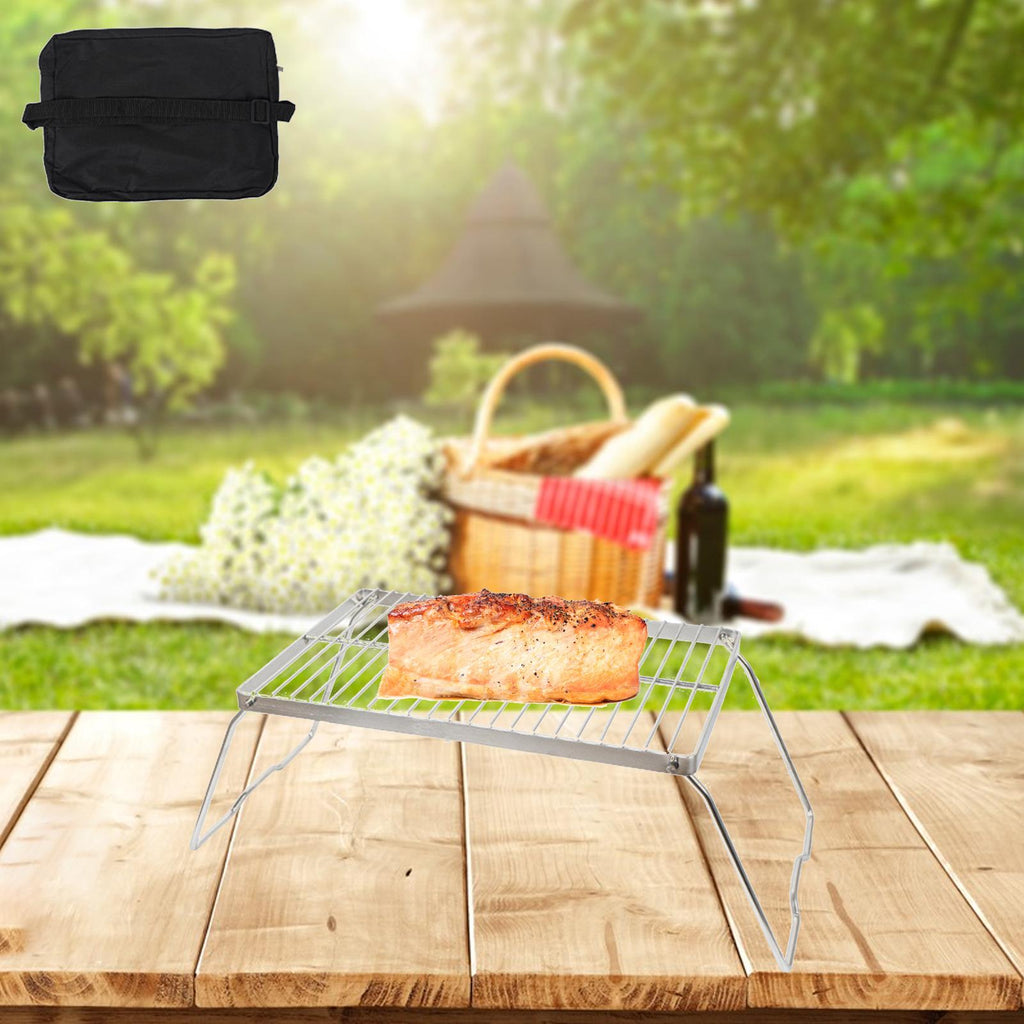 Material: our camping grill is made of stainless steel grate, it is anti rust, heat resistant, and it's not easy to be deformed to ensure long term use.