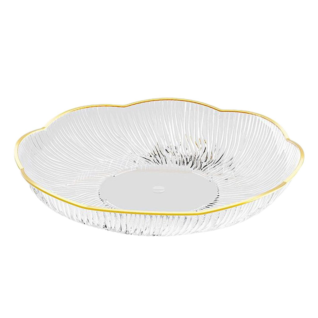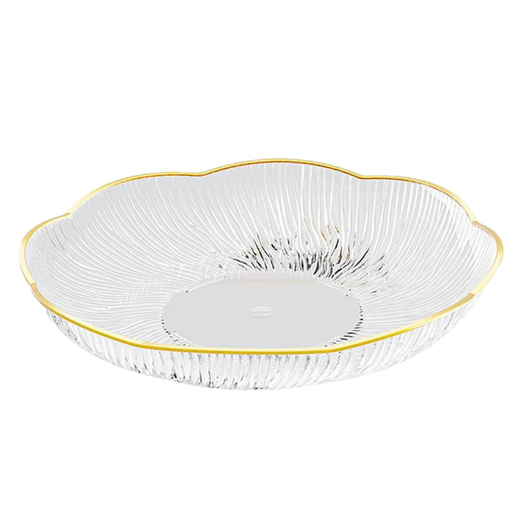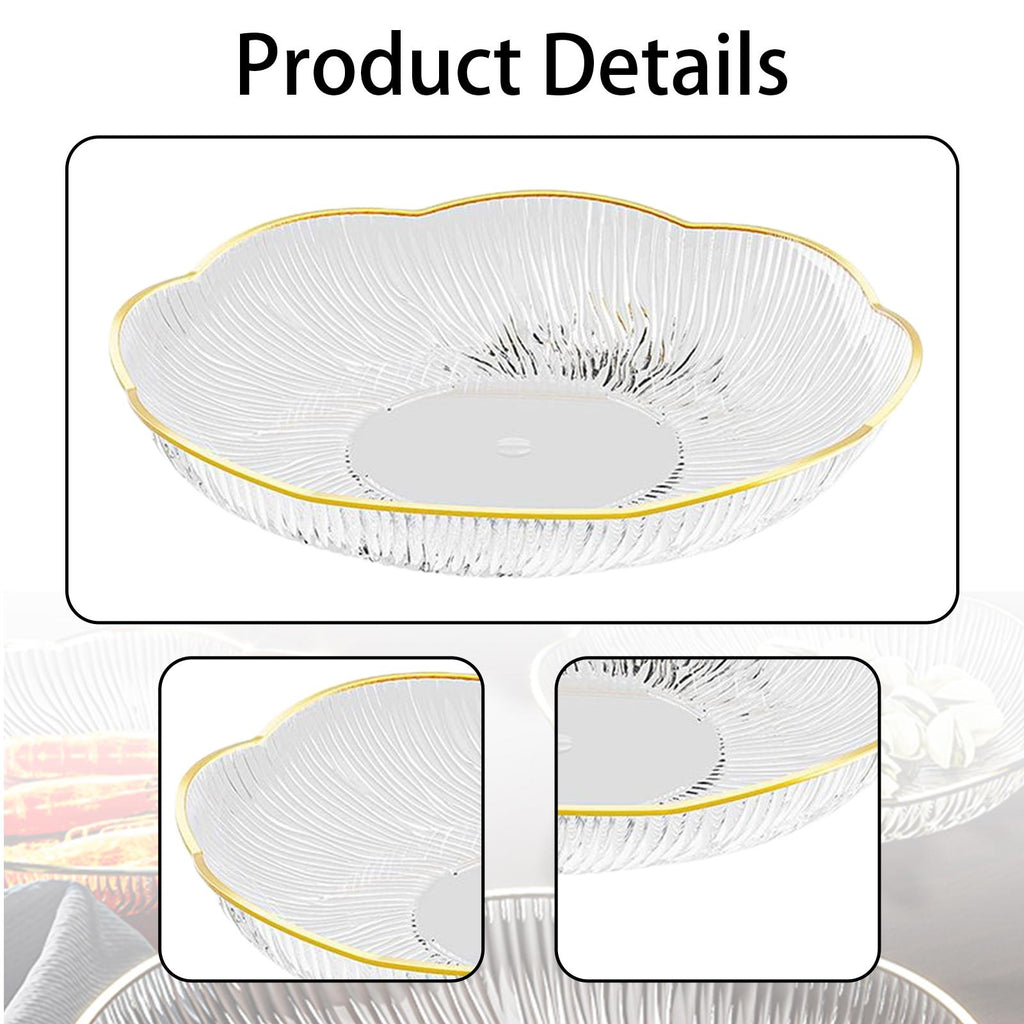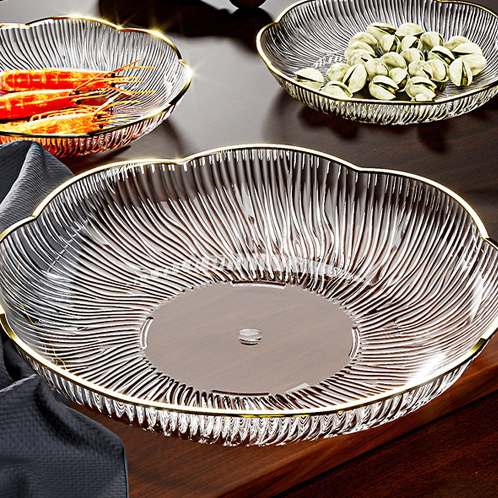 【Elegant Design】: This fruit plate features a sophisticated with petal shaped edges, adding a touch of luxury to any setting, Its transparent design beautifully complements the texture, making it an eye catching centerpiece for your living room or dining area