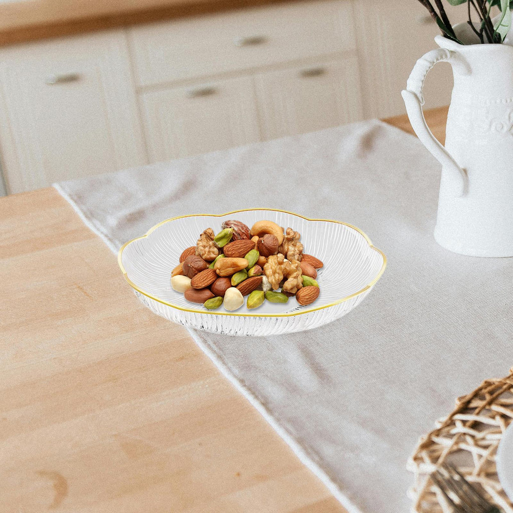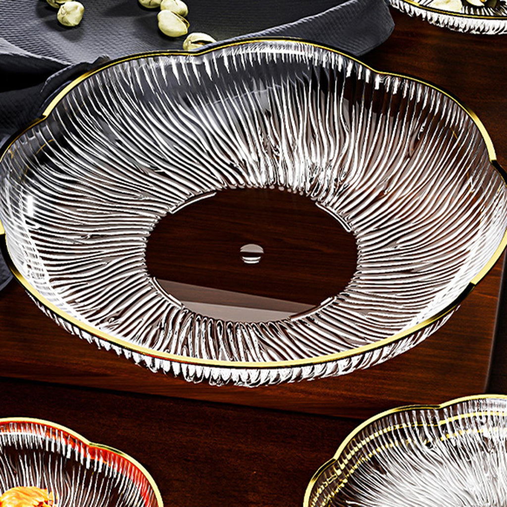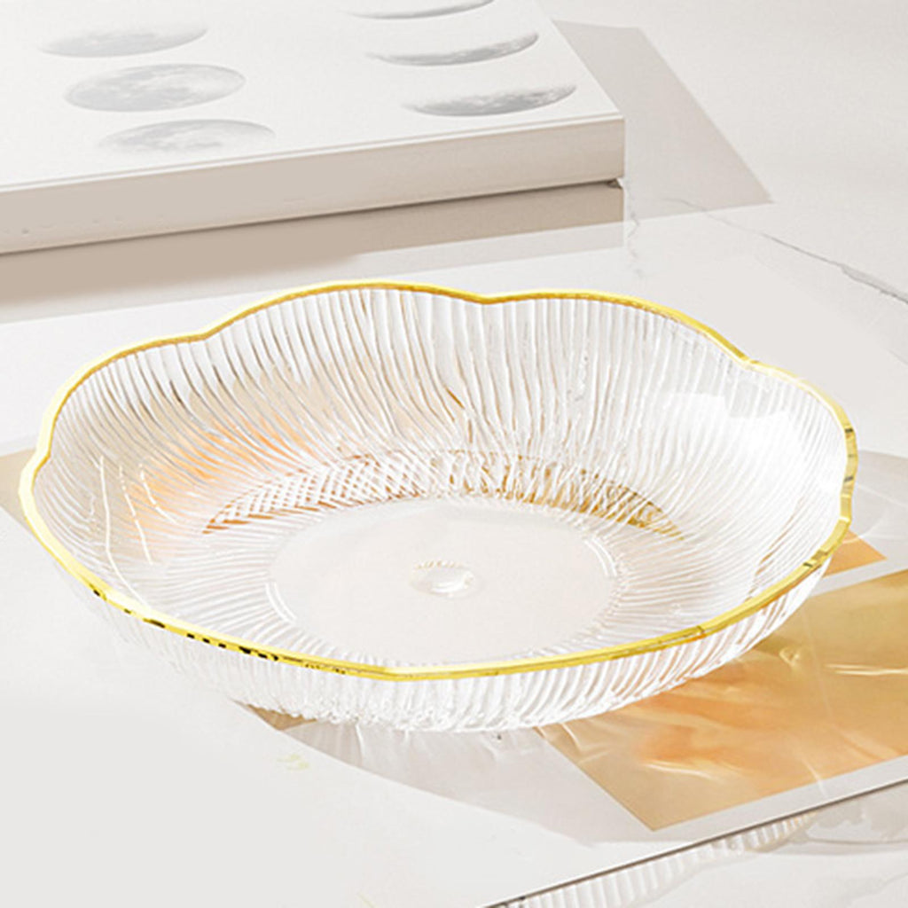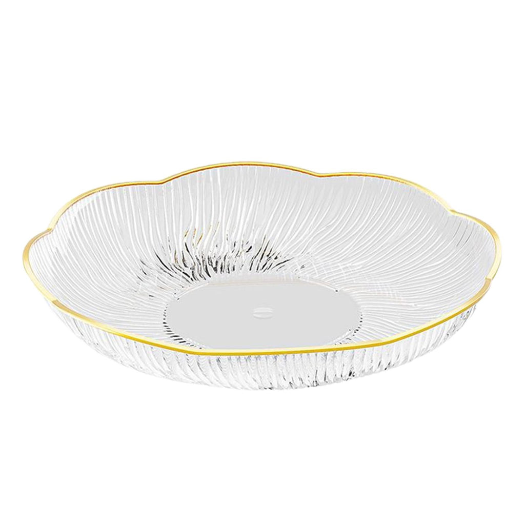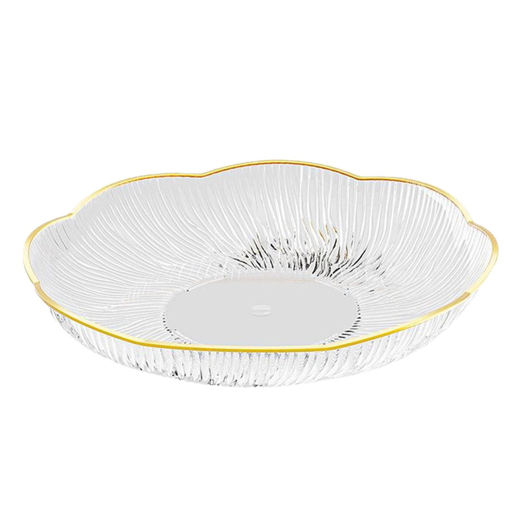 【Elegant Design】: This fruit plate features a sophisticated with petal shaped edges, adding a touch of luxury to any setting, Its transparent design beautifully complements the texture, making it an eye catching centerpiece for your living room or dining area
