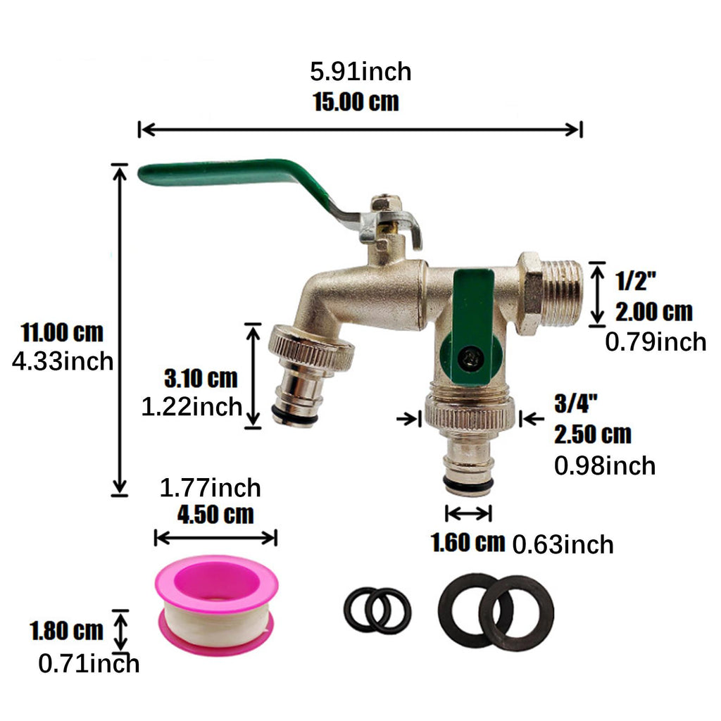 【Versatile Usage】: Featuring a 1/2 inch Inlet and 3/4 inch Outlet, this Outdoor Double Tap be connected simultaneously to hoses, washing machines, sprinklers, or rain , making it suitable for both indoor and outdoor use