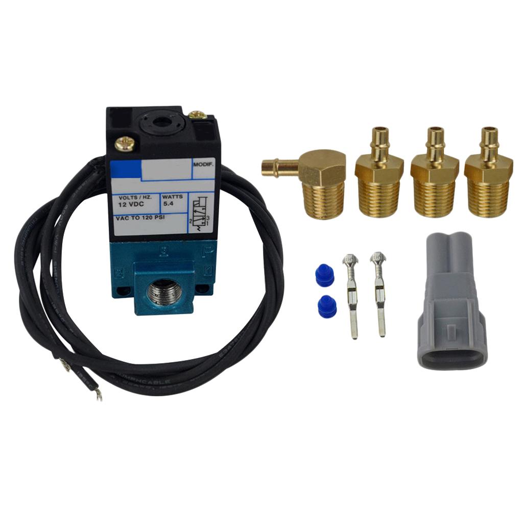 Can be used as a 3 port or 2 port solenoid. Includes brass hose barb fittings. All the Ports are 1/8 NPT so you can use any common fitting that you want including AN-adapters.