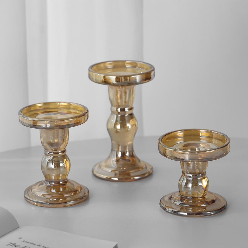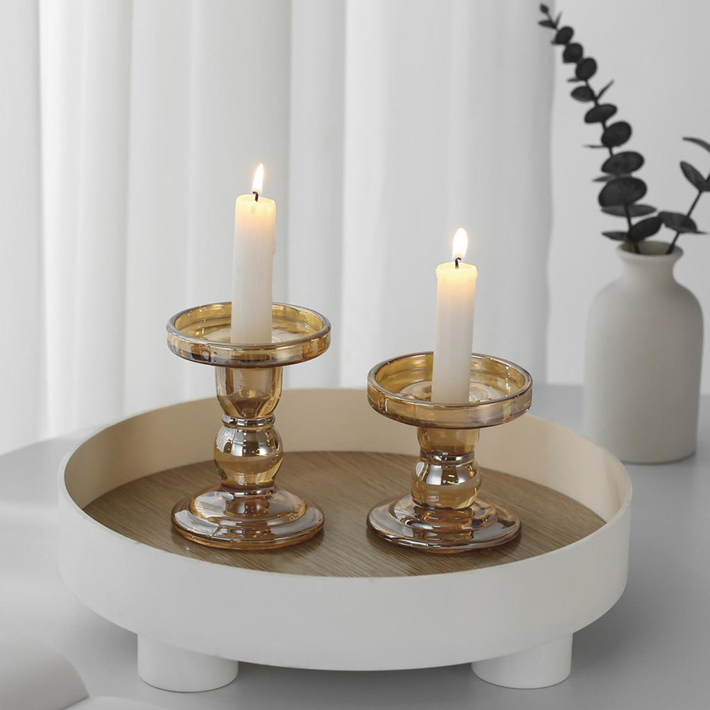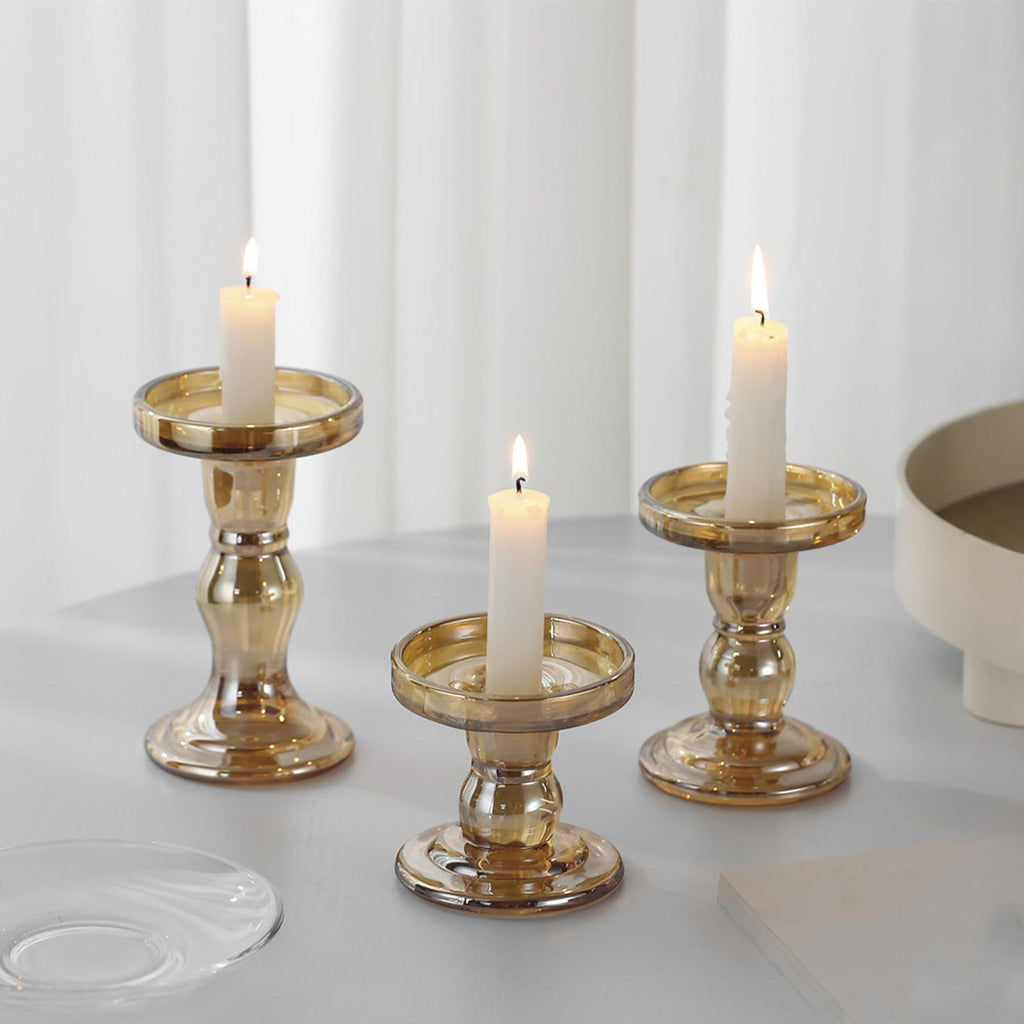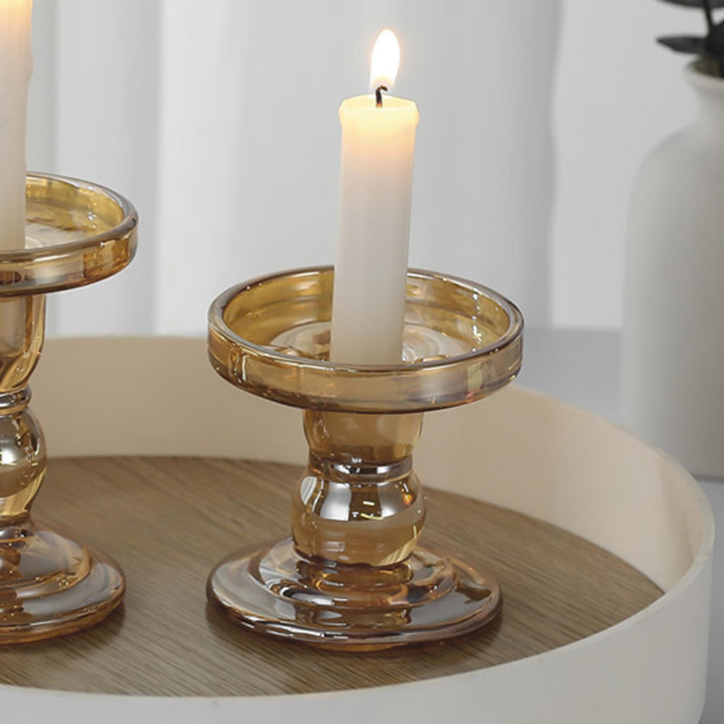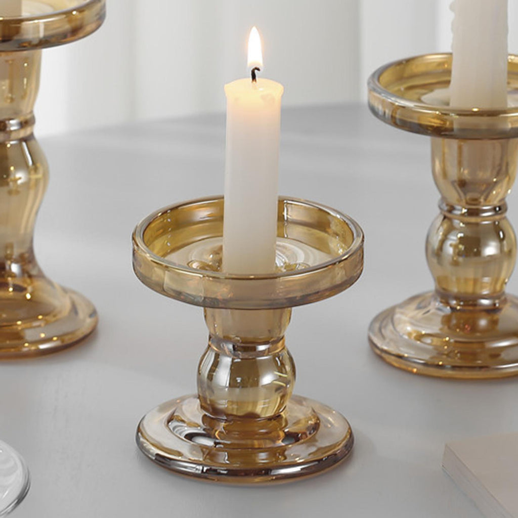 Glass Candle Holder Candlestick Candelabra for Living Room Party Holiday 8cmx8.5cm