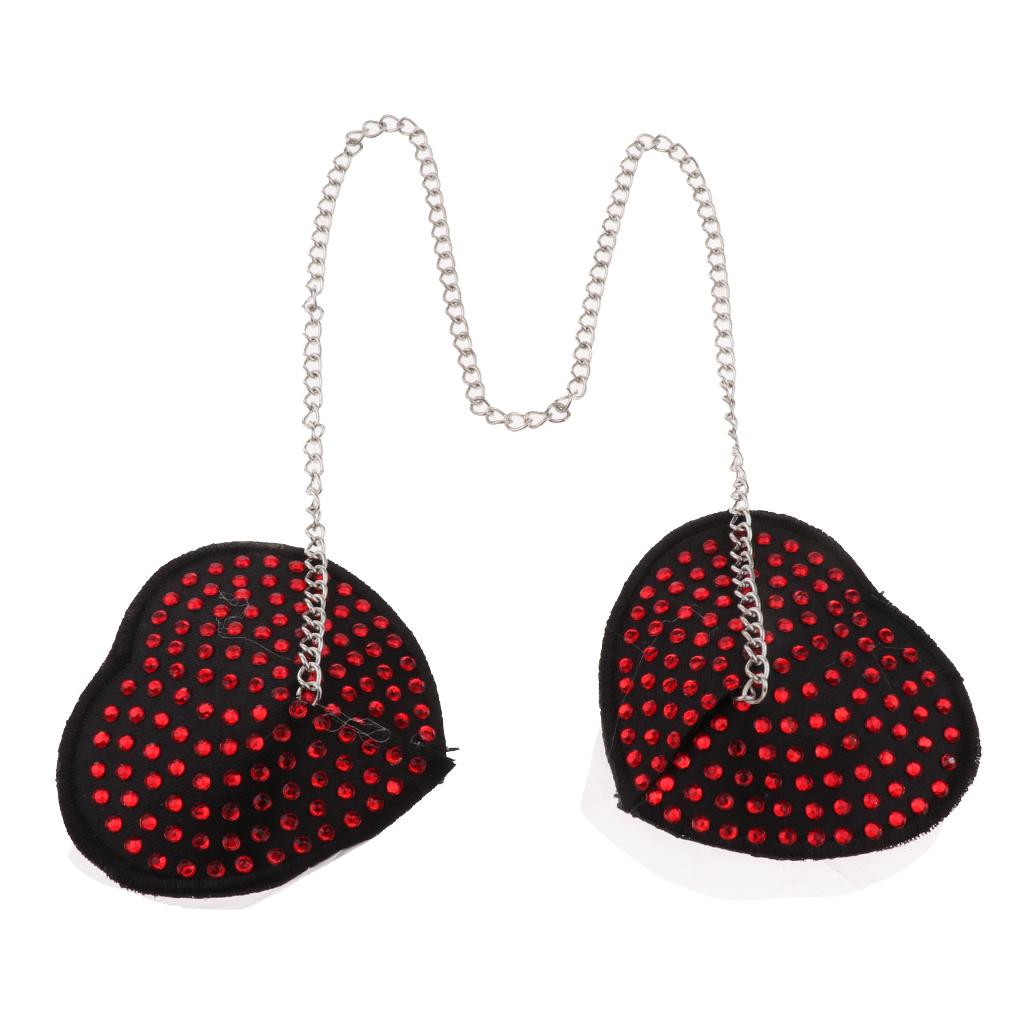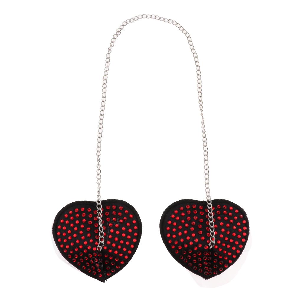 Heart shape soft fabric nipple cover with connected metal chain, show your feminine charisma perfectly, be more charming to atch his eyes.