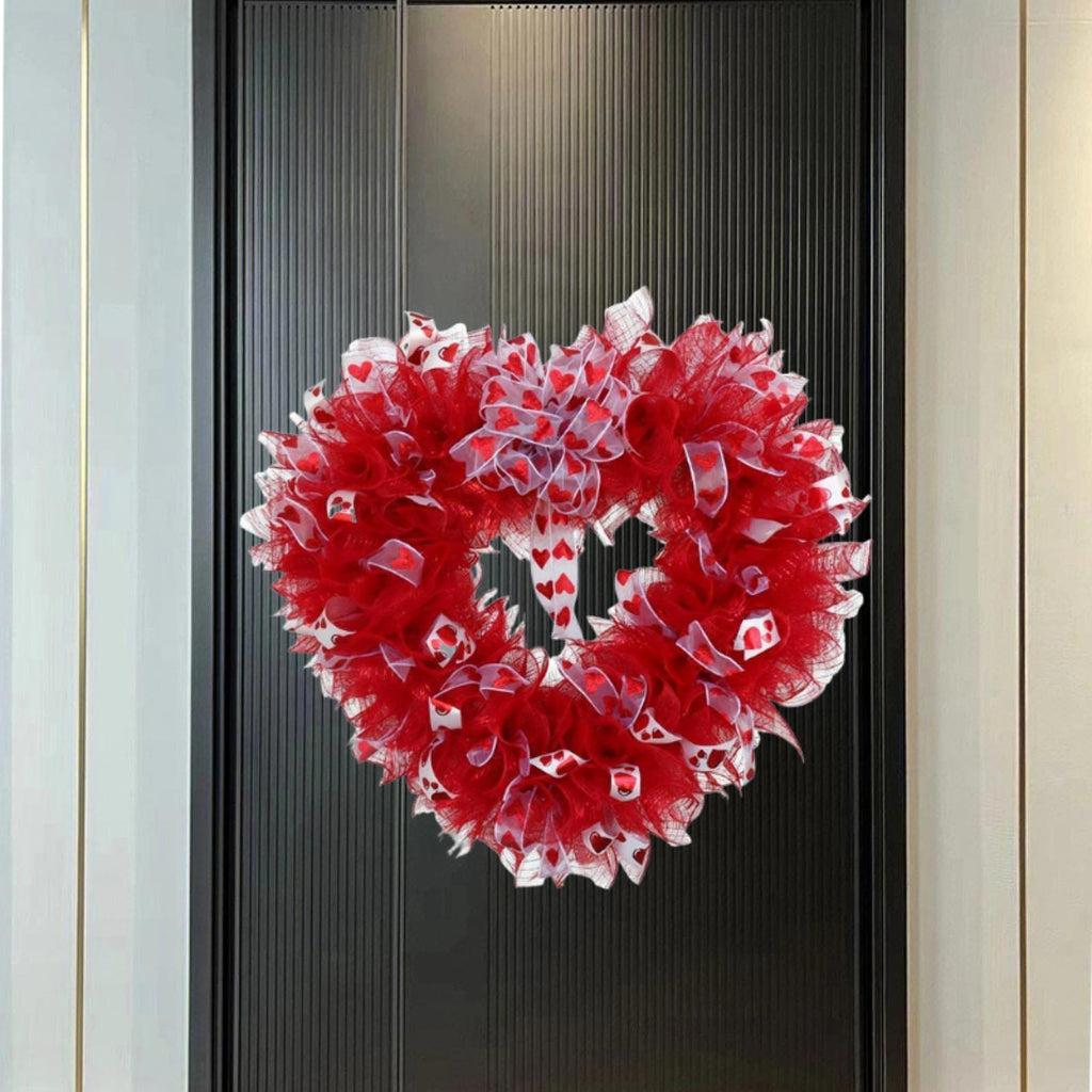 - 【Romantic】: Heart shaped wreath brings a warm and lively touch to your front door, creating a romantic Valentine’s Day atmosphere for your home
