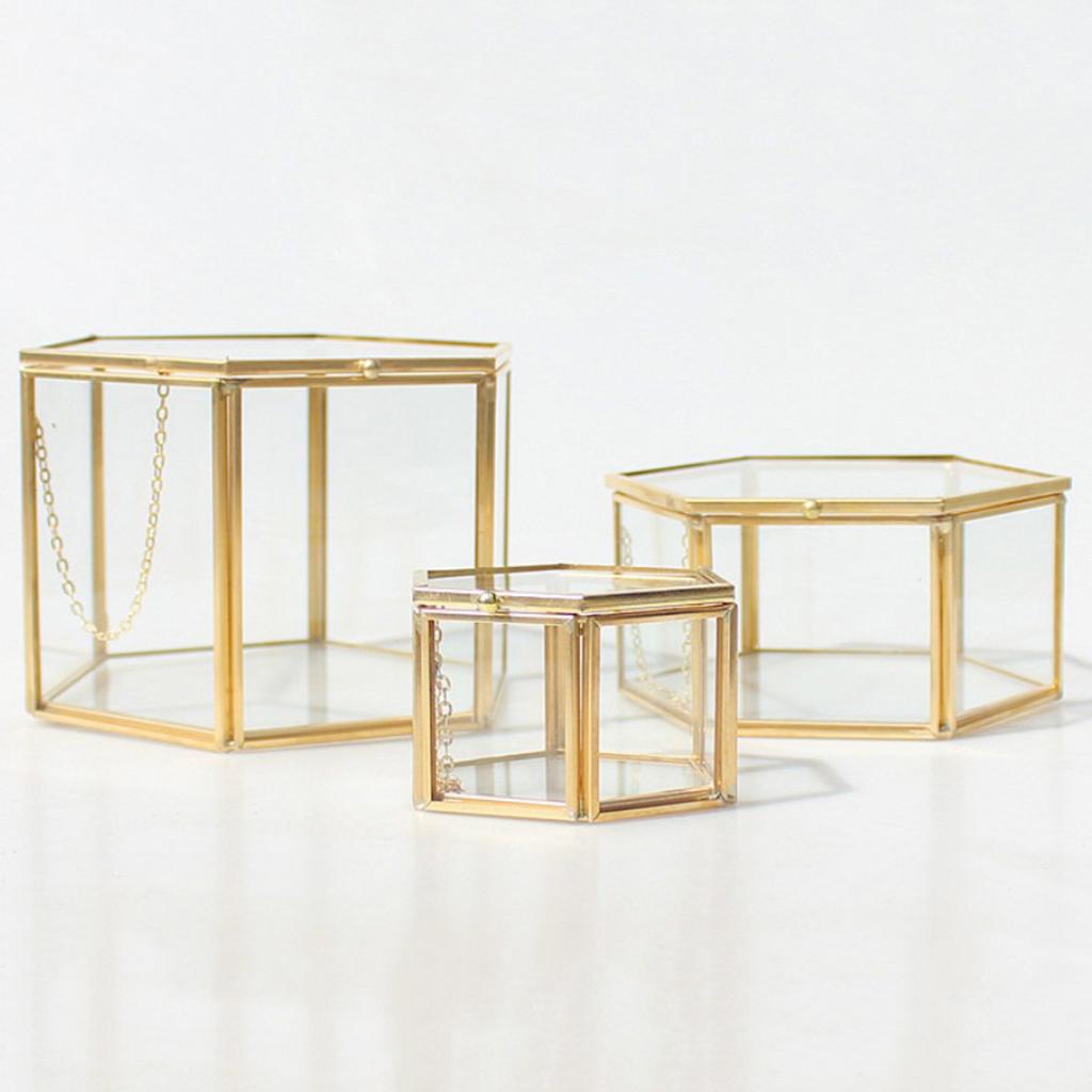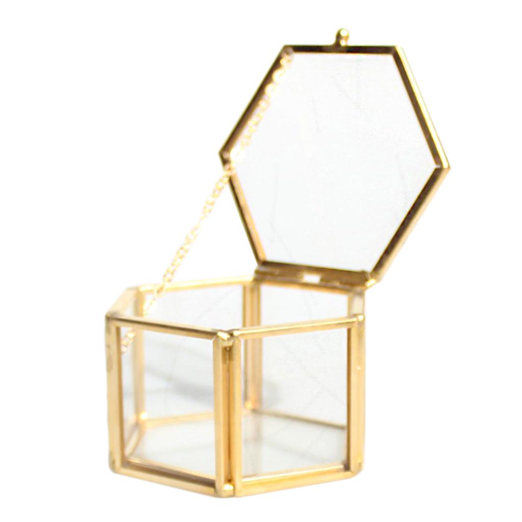 Maxbell Hexagon Brass Glass Geometric Terrarium Succulent Planter Wedding Favors 8 x 6.8 x 4.5 cm