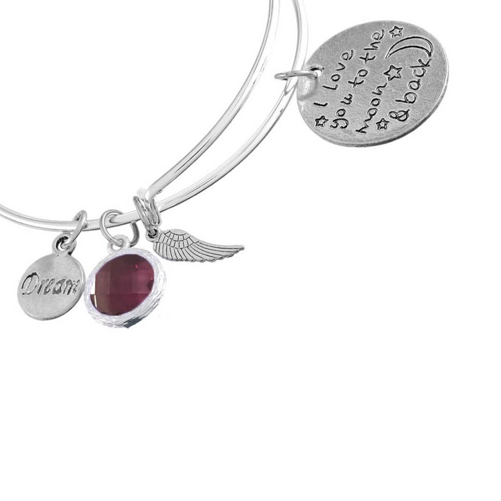 Maxbell Hidden Hollow Beads Birthstone Expandable Women's Wire Bangle Bracelet 1