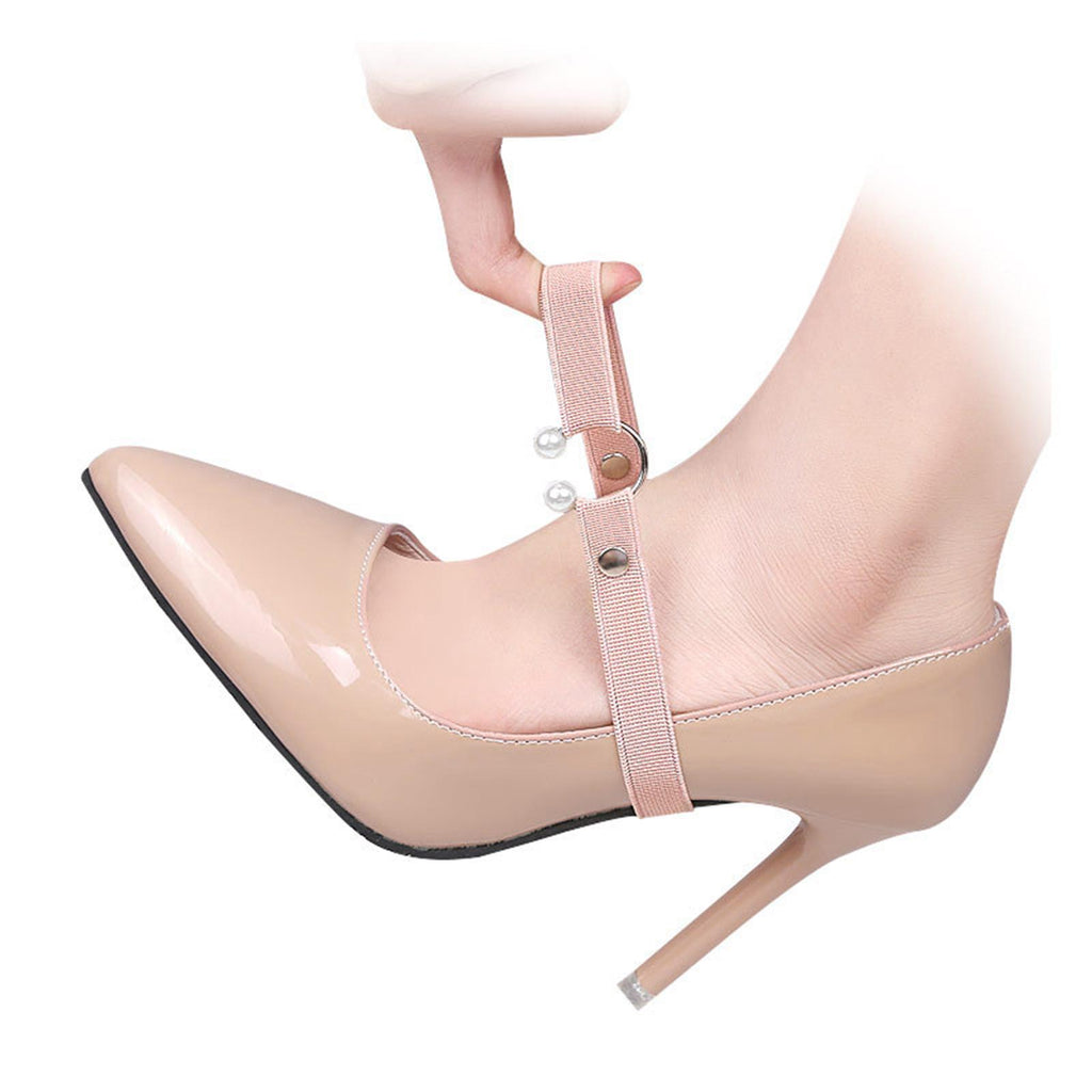 【Shoe Straps】: The shoe straps are used to hold loose high heel shoes, anti slip buckle for stability and protection, and an elastic band, with beads design, suitable for women, lady