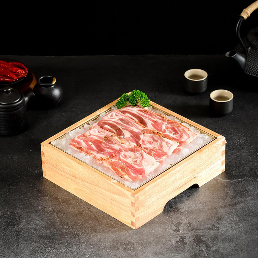 【Woooden Box Food Container for Cold Food Display】: Ice chilled cold food buffet server platter is great for serving and displaying cold food, such as beef, meat, seafood, sashimi, sushi, or salmon and more