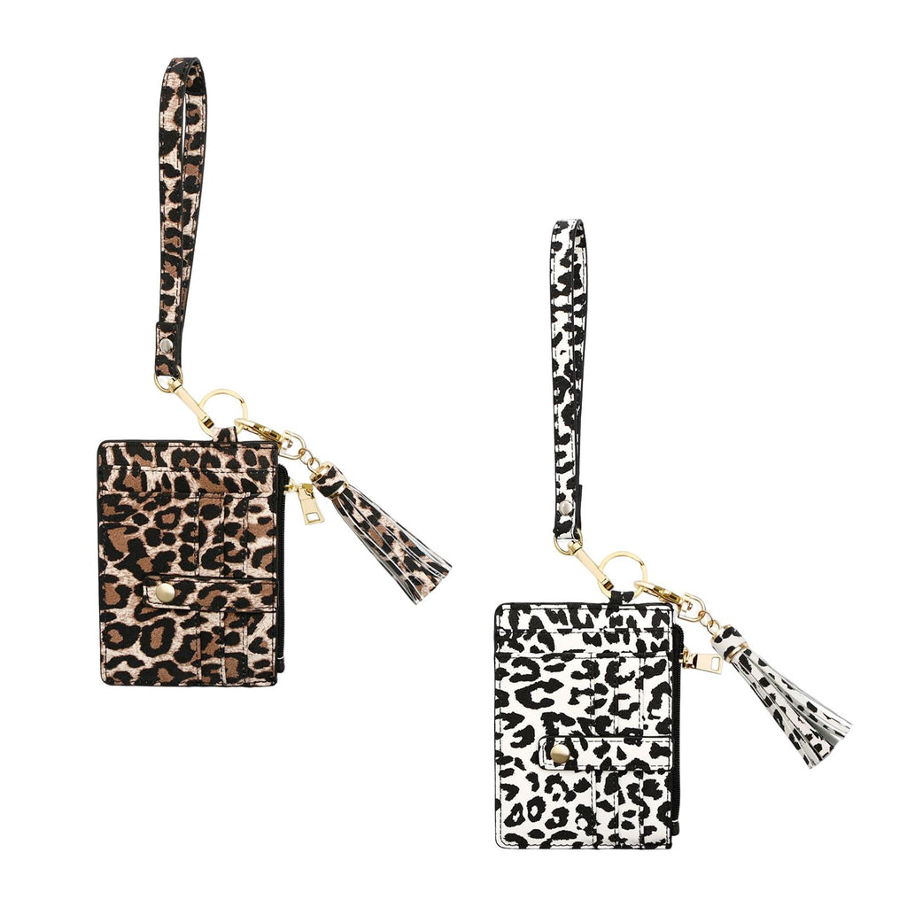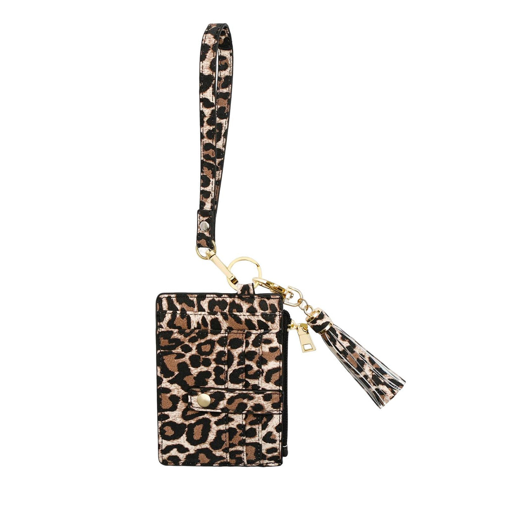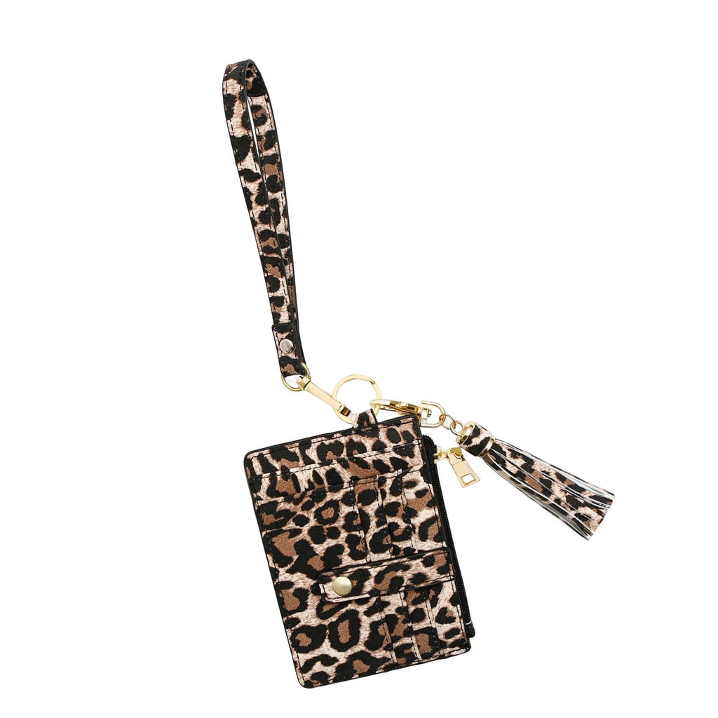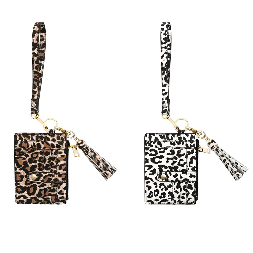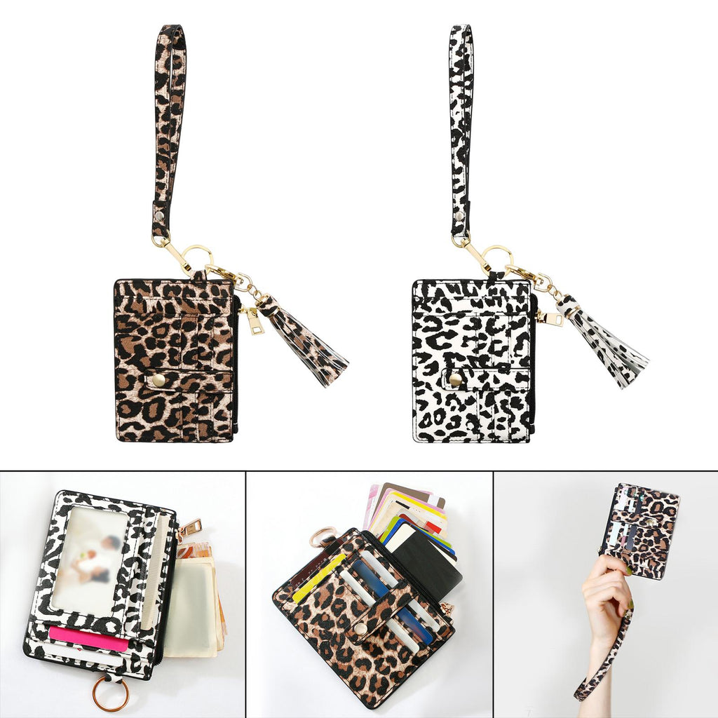 Maxbell ID Card Holder Women Bracelets Zipper Case Leather Key Chain Female Leopard print