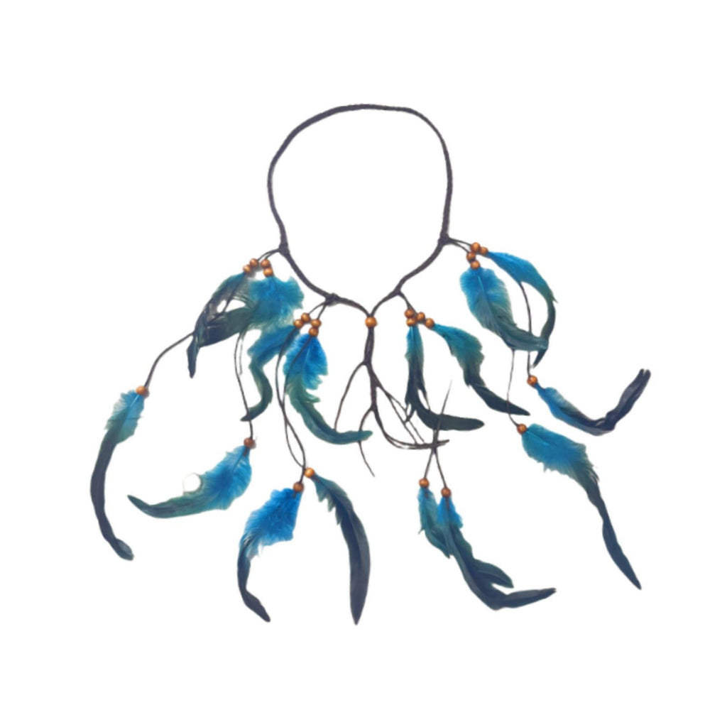 Maxbell Indian Feather Headband Braided Band Hair Accessory for Prom Holiday Cosplay Blue