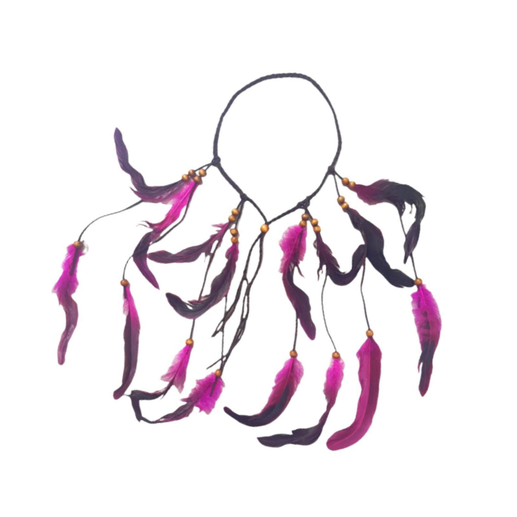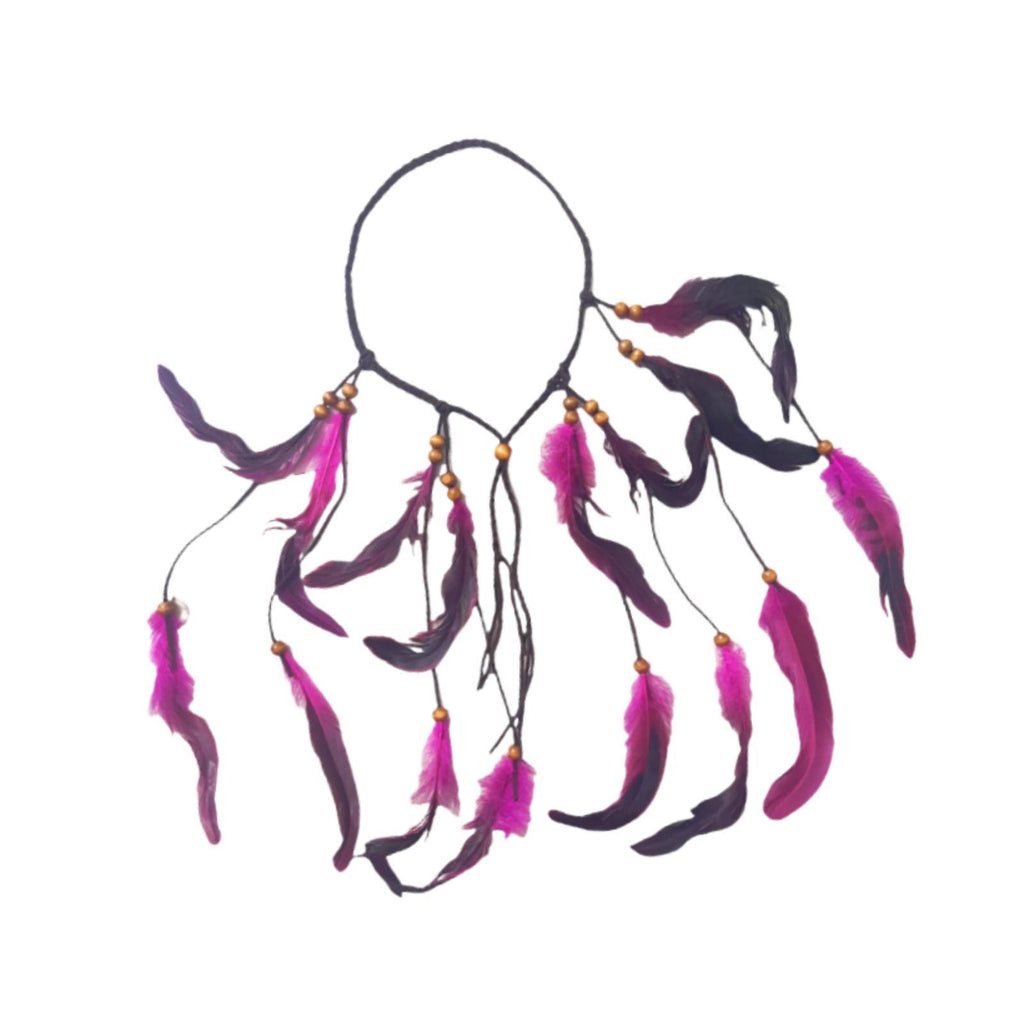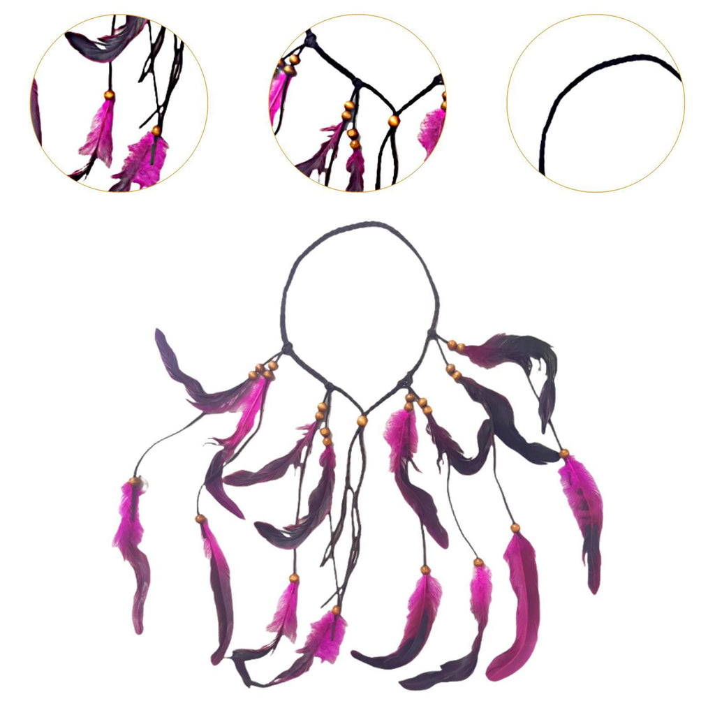 Maxbell Indian Feather Headband Braided Band Hair Accessory for Prom Holiday Cosplay Rose Red