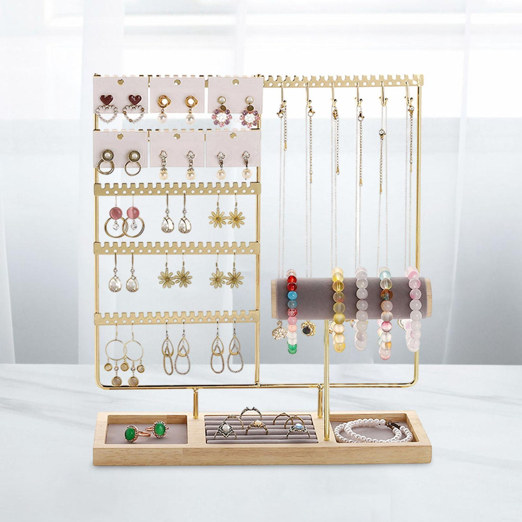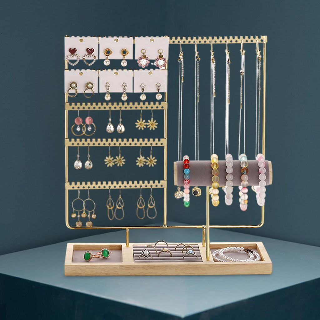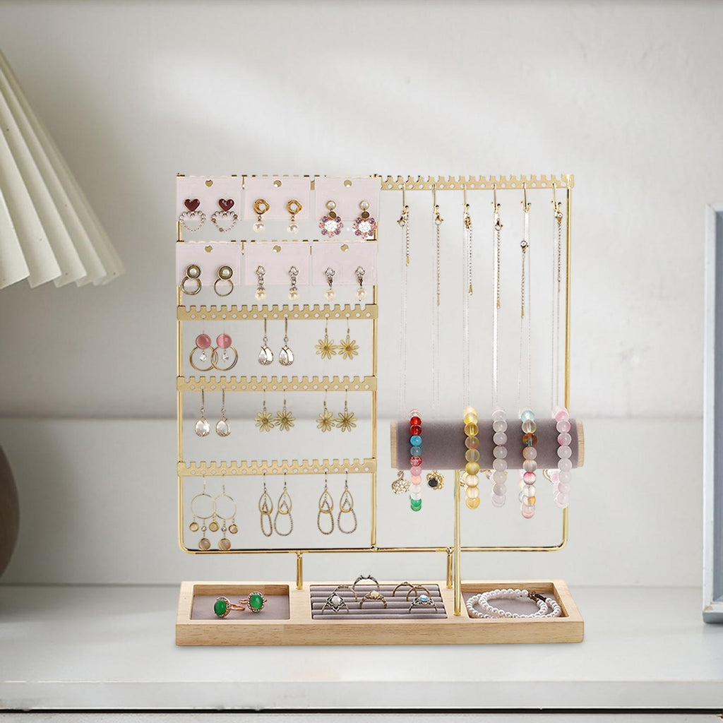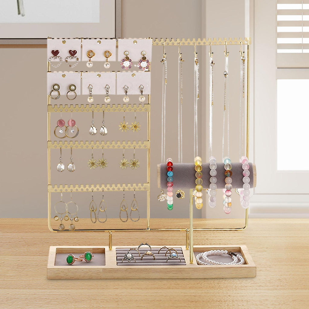 Maxbell Jewelry Display Stand Tabletop Multifunctional Earring Holes Bracelet Holder gold