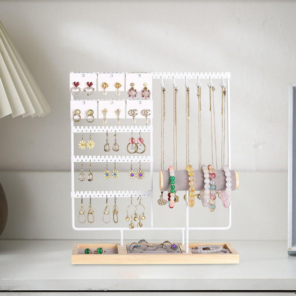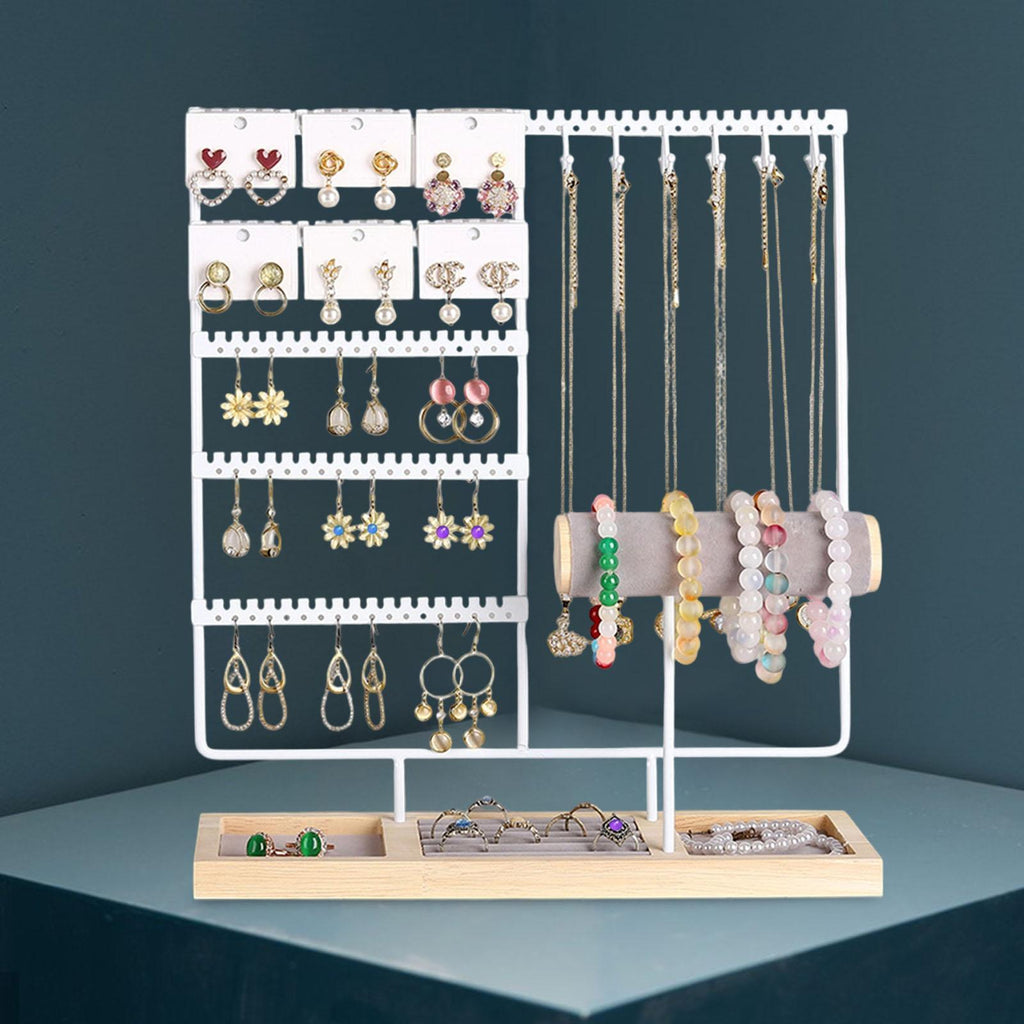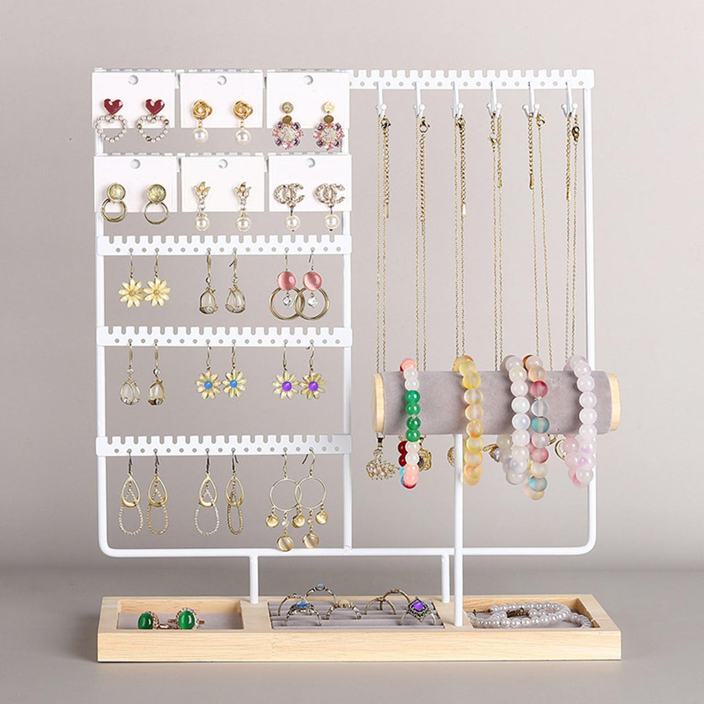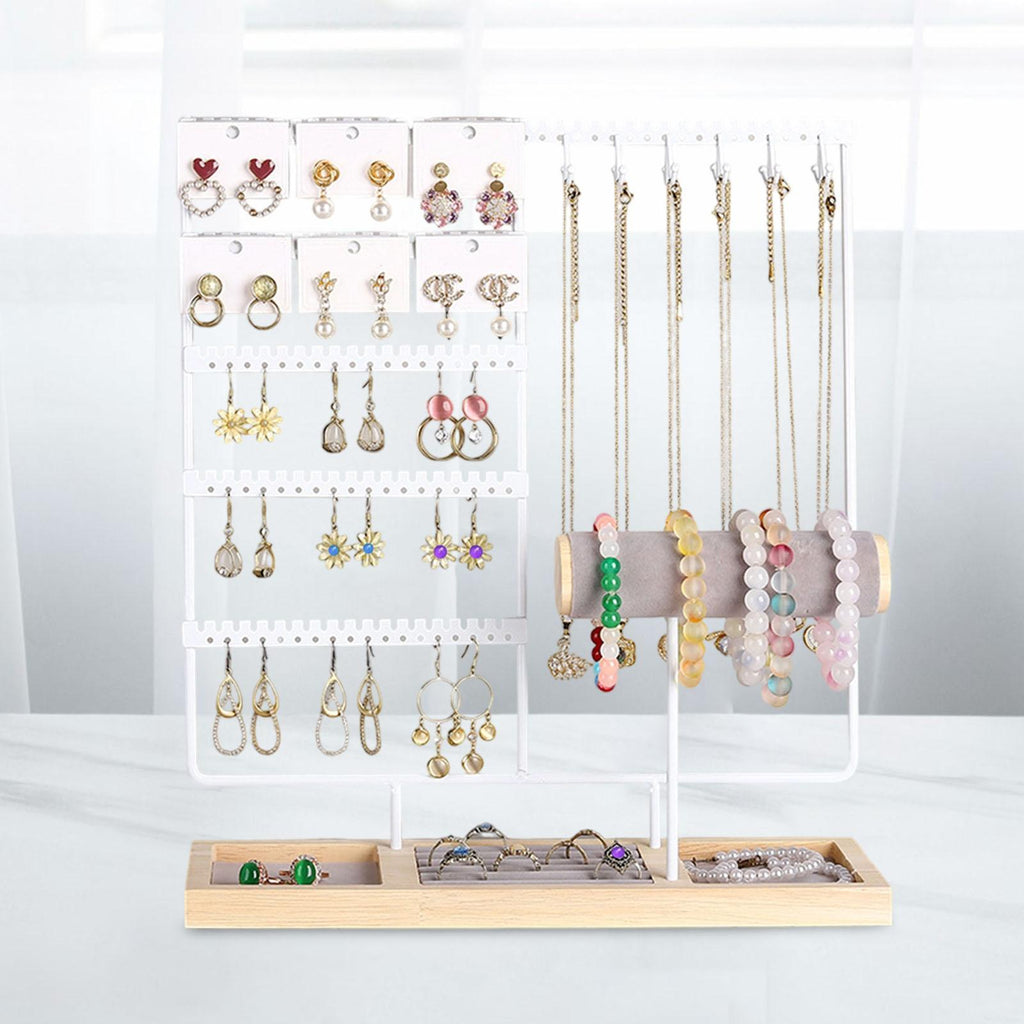Maxbell Jewelry Display Stand Tabletop Multifunctional Earring Holes Bracelet Holder white