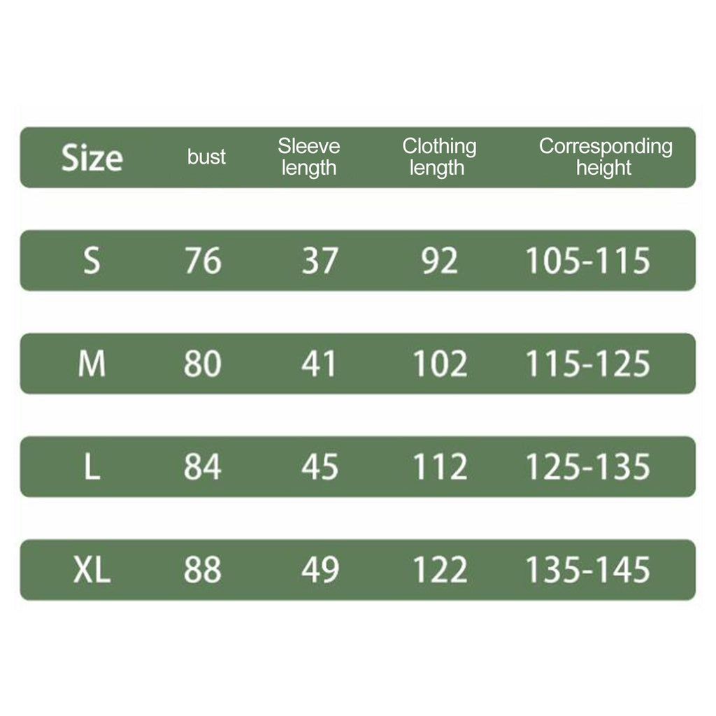 Bust 88cm/34.65inch, Sleeve Length 49cm/19.29inch, Length 122cm/48.03inch, Height 135cm-145cm/53.15inch-57.09inchPackage Includes: