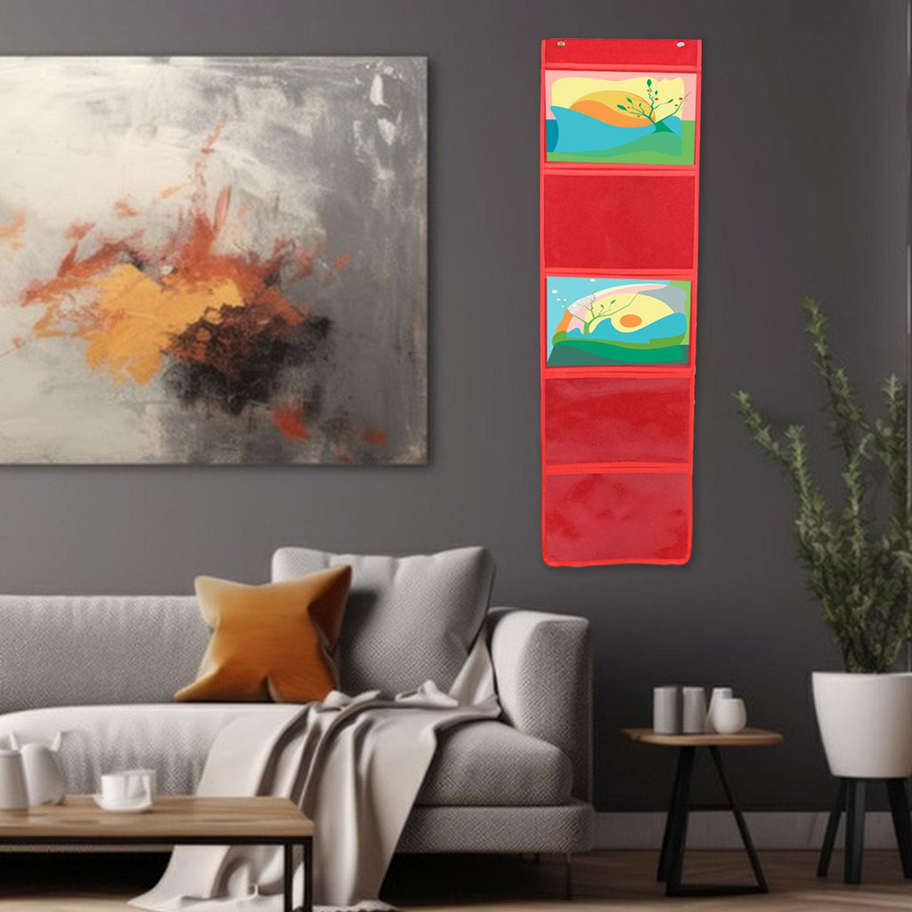 Maxbell Kindergarten Works Display Hanging Bag Wall Hanging for Library Pharmacy Use Red