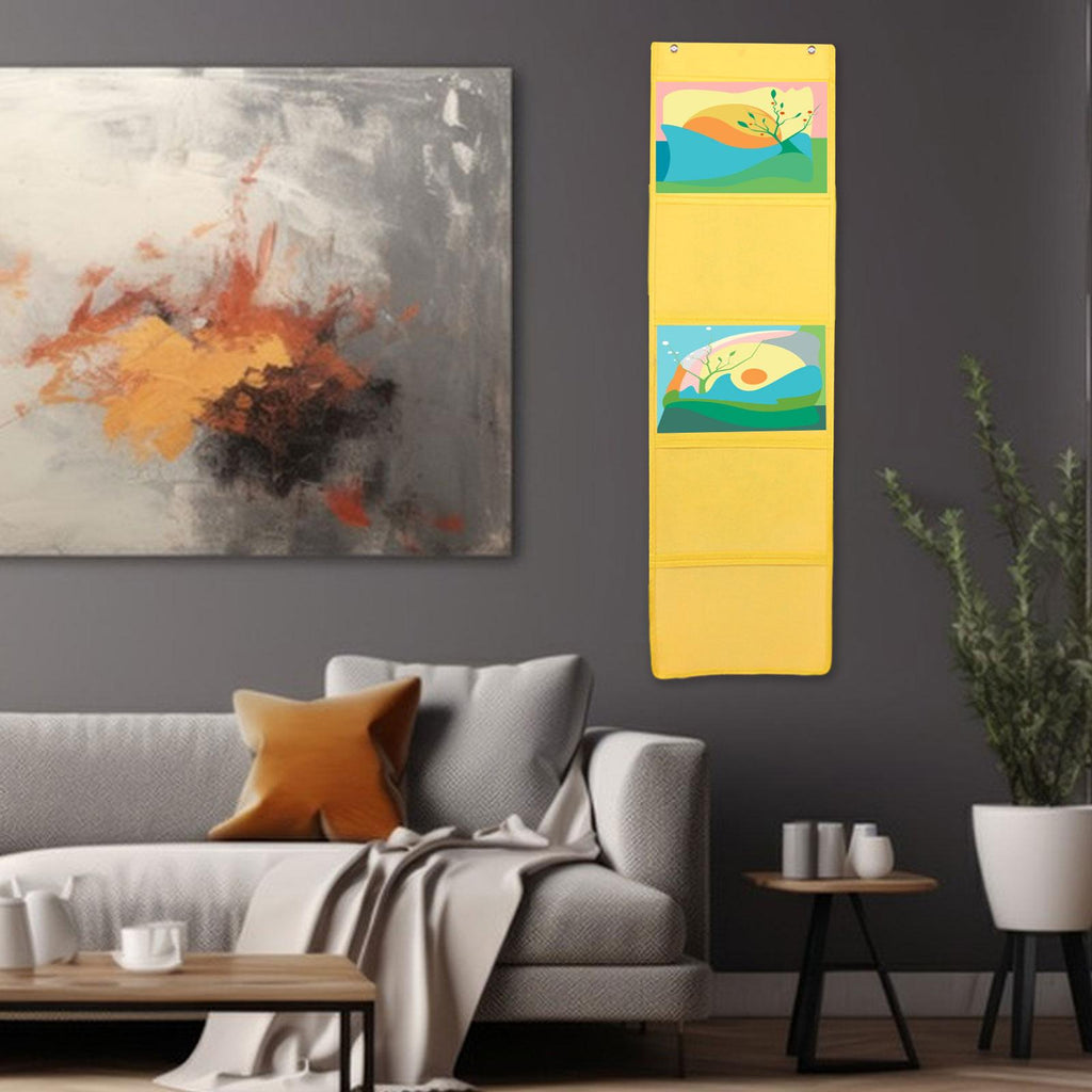 Maxbell Kindergarten Works Display Hanging Bag Wall Hanging for Library Pharmacy Use Yellow