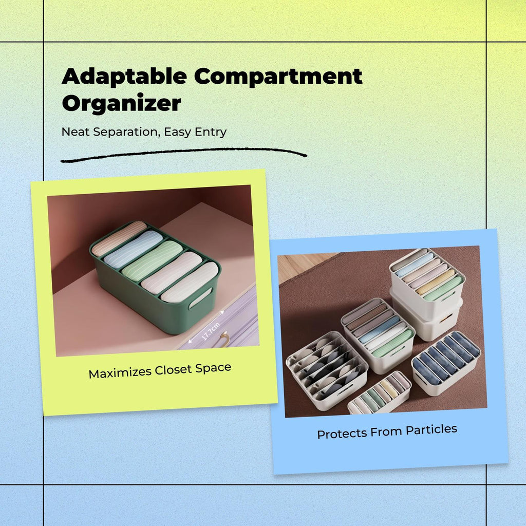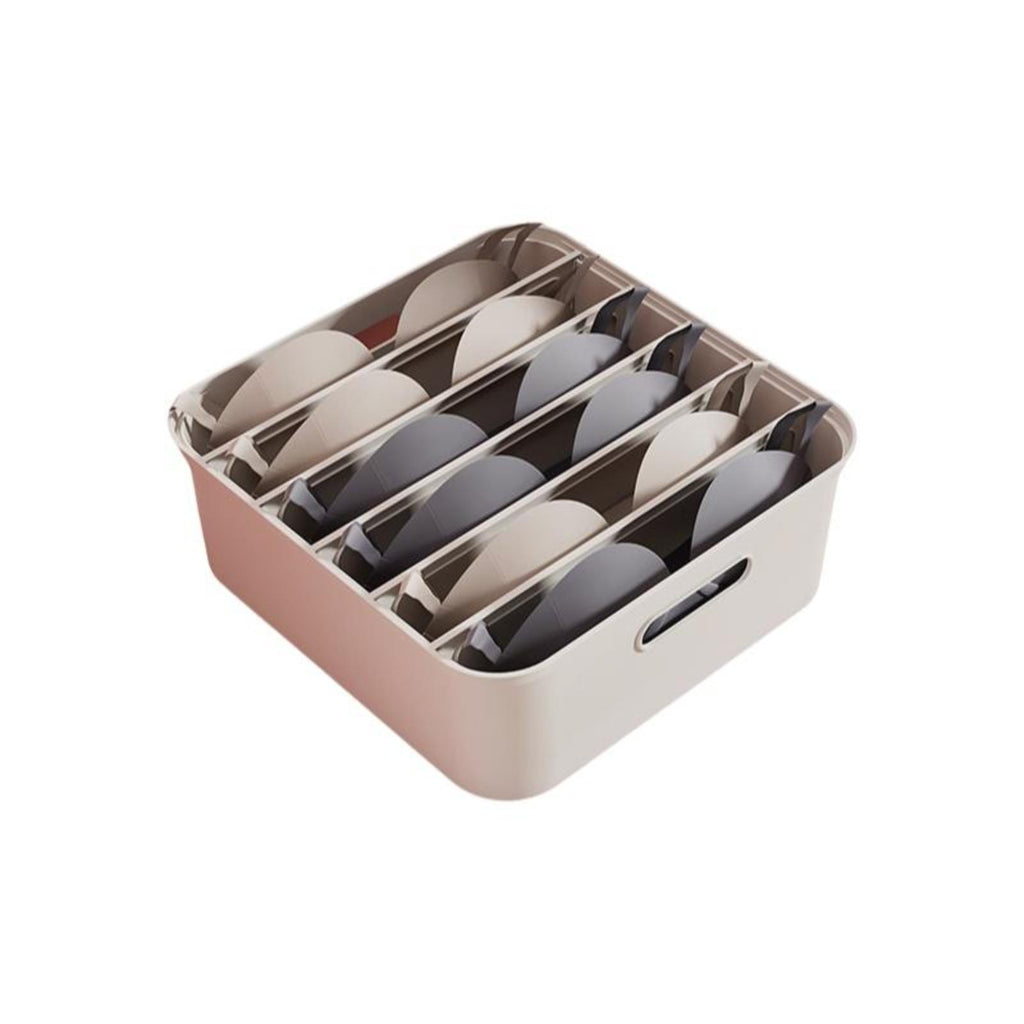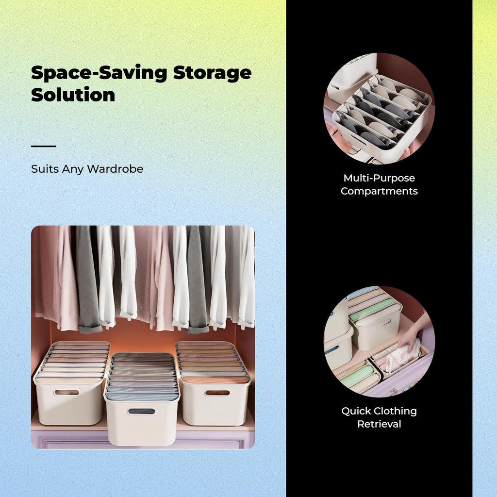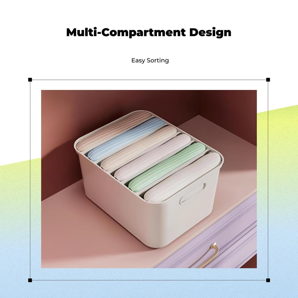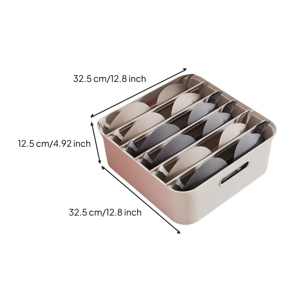 Large Closet Organizer, Stackable Storage Box with Hinged Lid, Multi-Purpose Wardrobe Bin Ivory White Bra Box 6 Grids