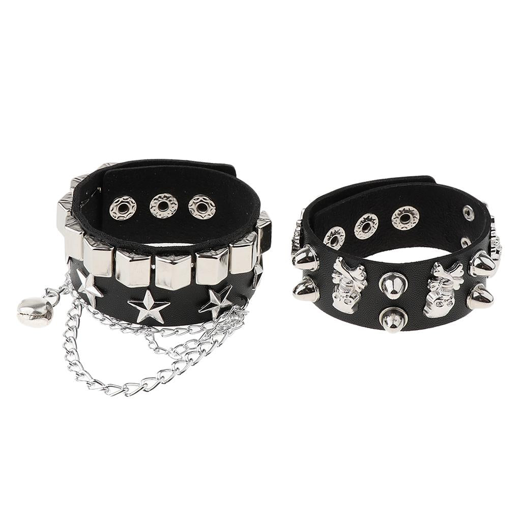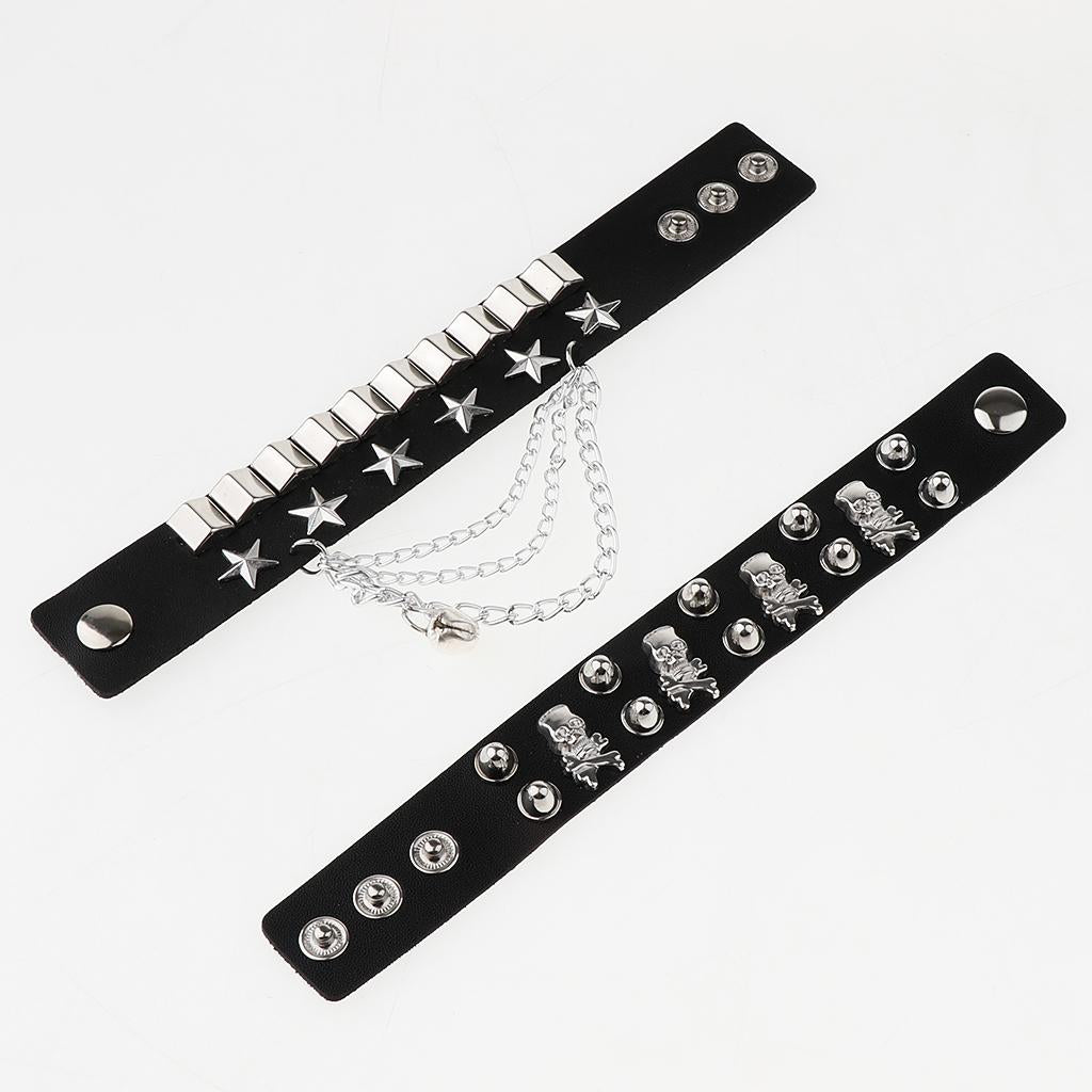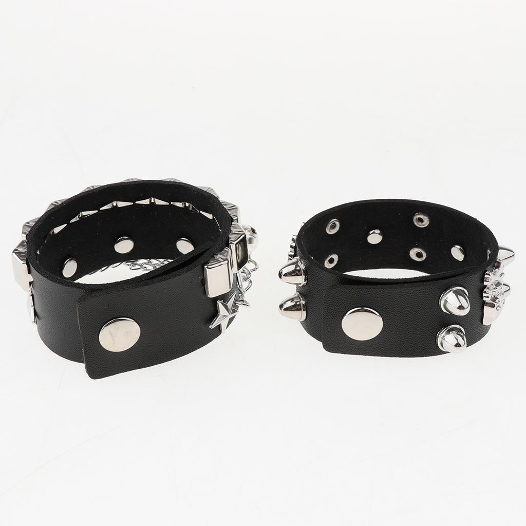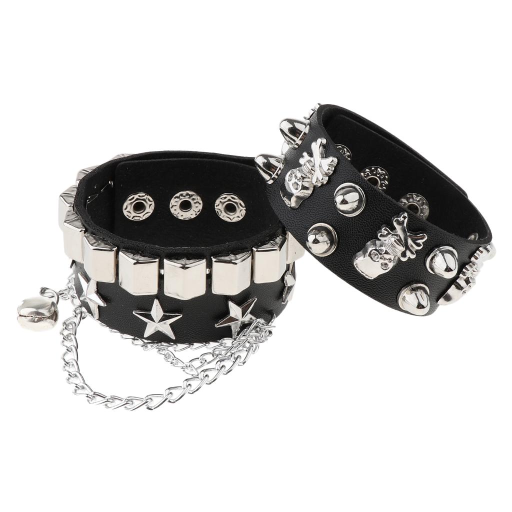 Max Layered Gothic Skull Punk Bracelet Rivet Leather Cuff Bangle Wristband Black