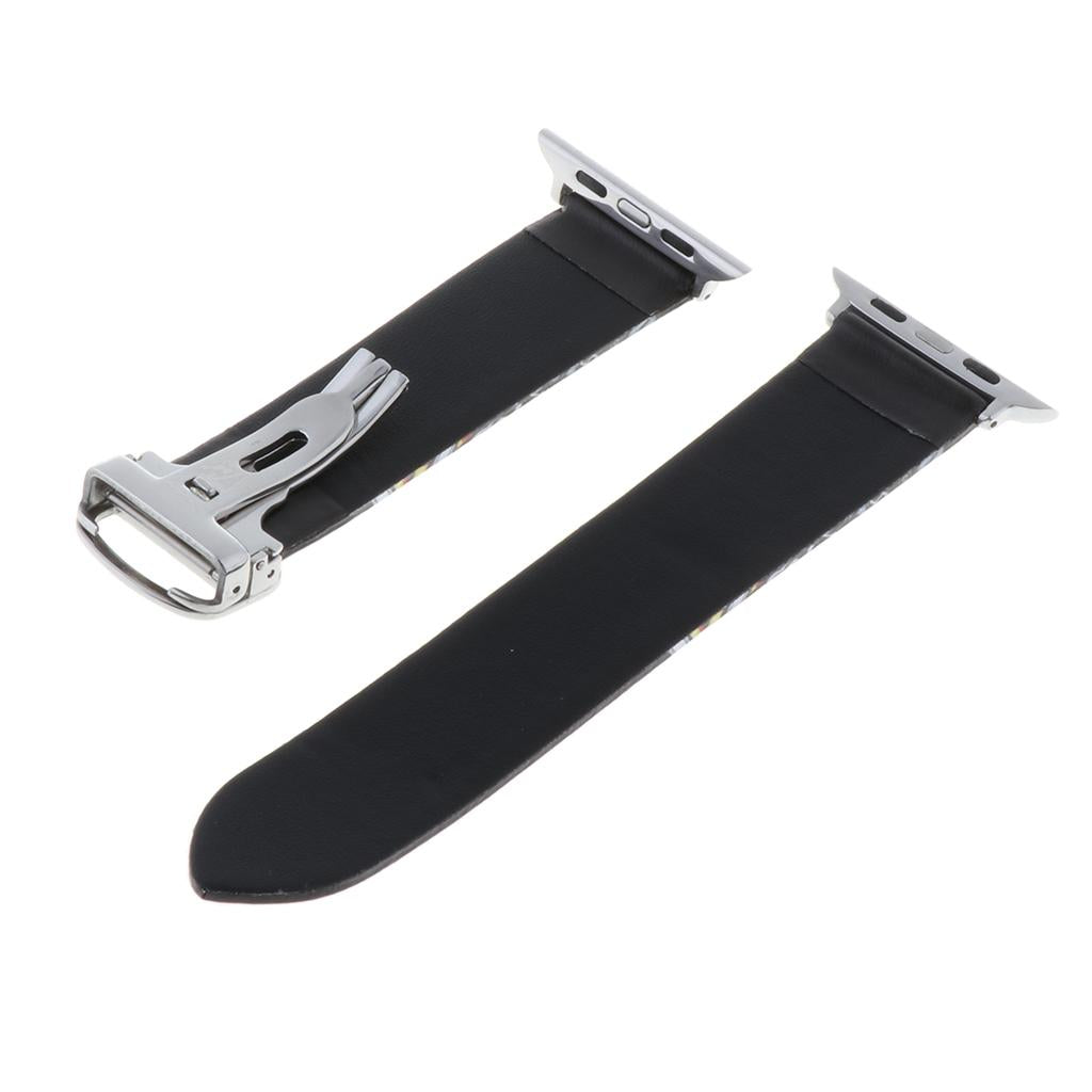 Maxbell Leather Watch Band Sport Fitness Bracelet Strap for Apple Watch 4 Black