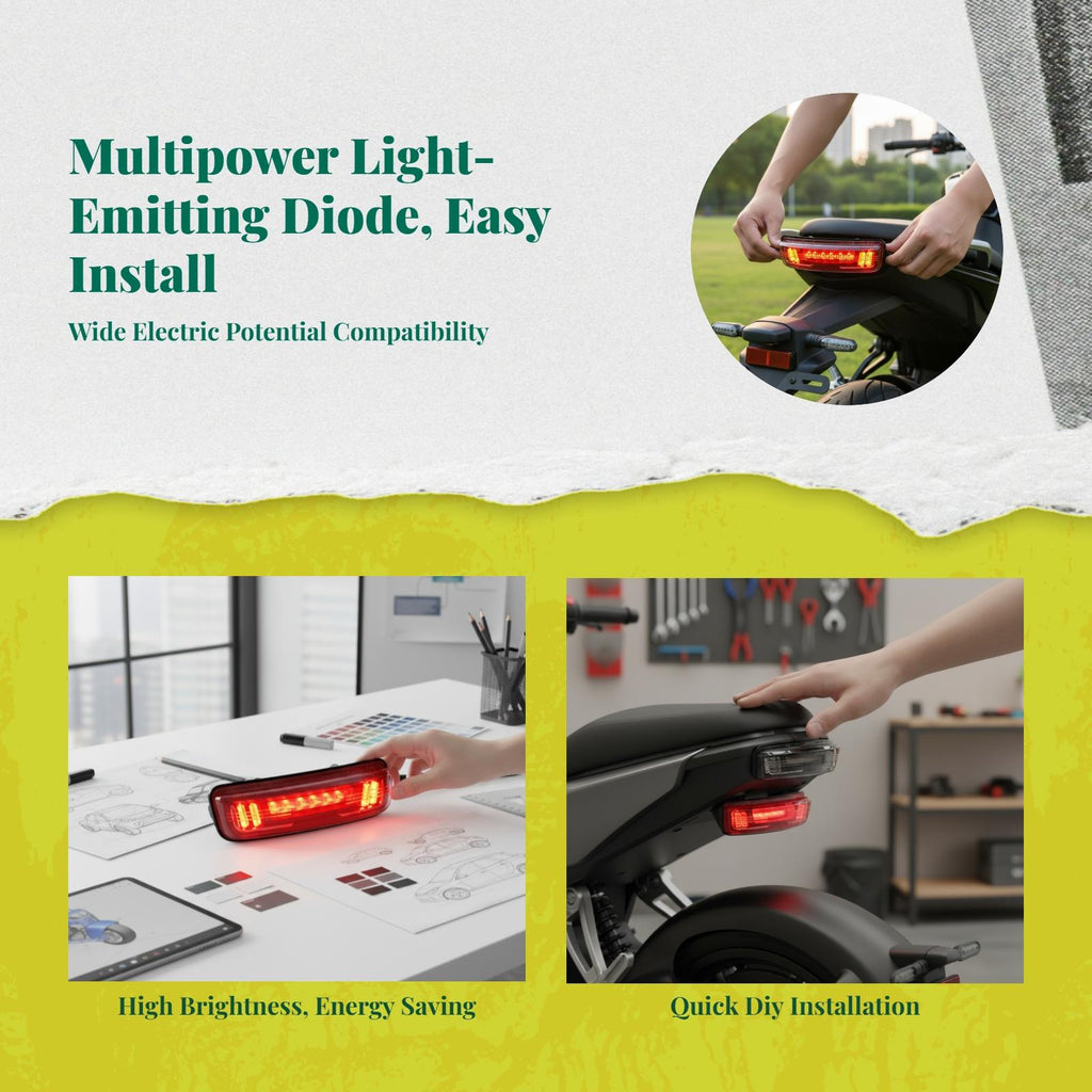 [Adaptable light for Electric Vehicles] This light is designed for electric motorcycles and bikes, delivering stable performance and compatibility with 12V, 48V, and 60V systems. It features integrated brake, running, and turn marker functions for enhanced. [Waterproof and Dustproof Design] With IP65-rated waterproof and dustproof protection, it ensures dependable in various weather conditions, making it suitable for common commuting and outdoor riding. [High Brightness and Energy Saving] Equipped with high-brightness lights, it provides clear visibility while conserving energy, helping prolong battery life and promote safer night riding. [Easy Installation and Universal Fit] The universal design enables easy installation on most electric motorcycles, scooters, and ATVs, making it a practical replacement solution. [sturdy and Long] Made from high-quality materials, it offers a long maintenance life and stable performance, ensuring dependable use over time.Specification: