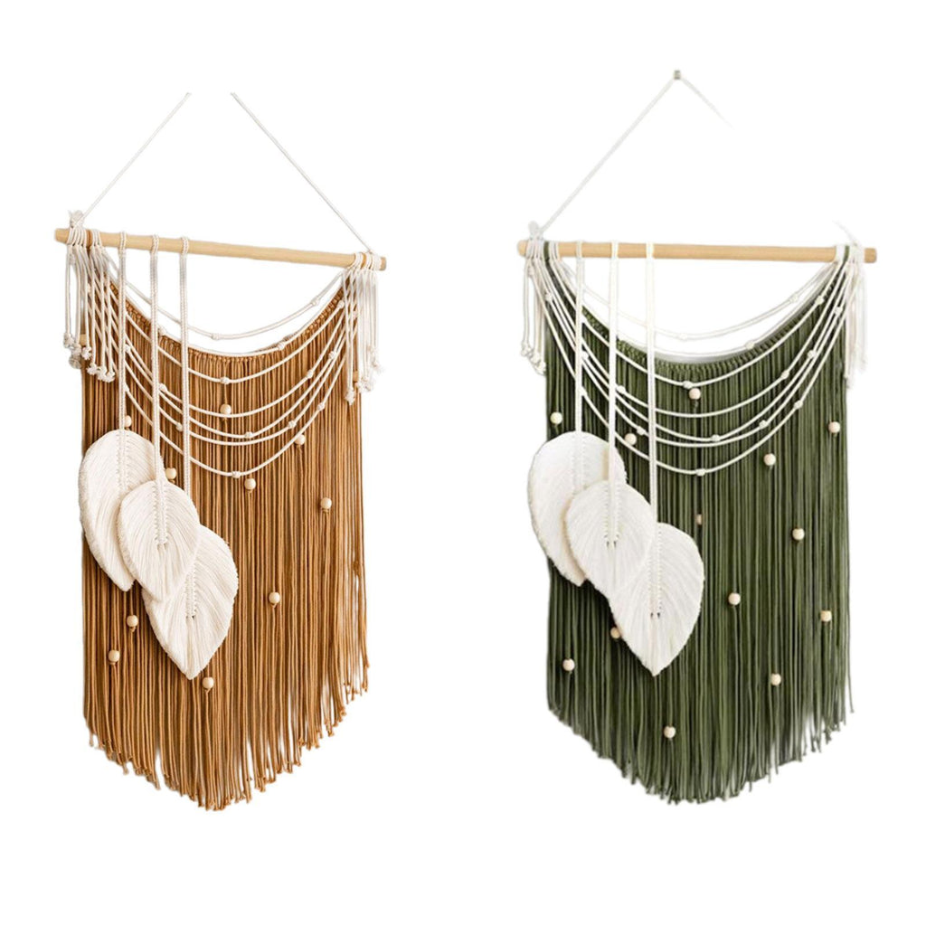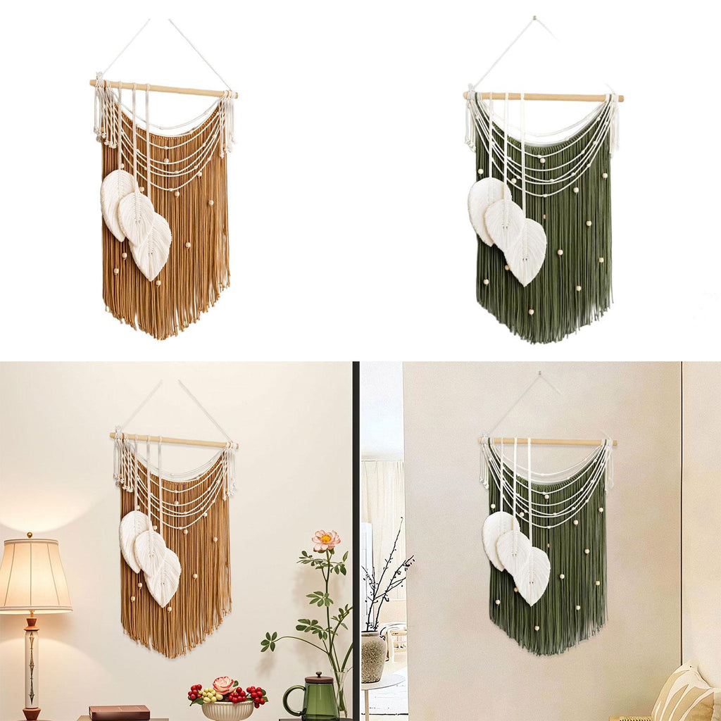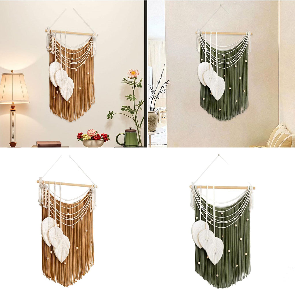 【Handwoven Handicraft】: Bohemian wall art, with beautiful leaves patterns woven, long tassels, simple, modern and elegant