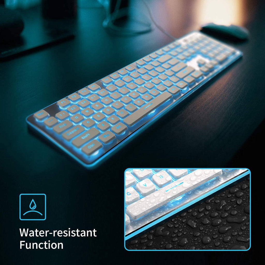 SOFT & RESPONSIVE KEYS:All keys are very soft to touch and offer very precise keystrokes, for work or gaming. It has a lifespan of 5,000,000 clicks. Removable keycaps for quick cleaning, do not worry about dust or dirt. The double-colored injection keycaps offer crystal clear uniform backlighting and the letters will never fade away.