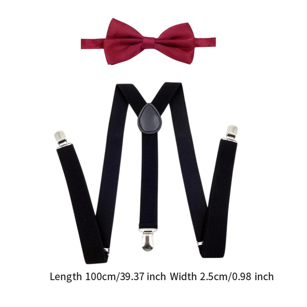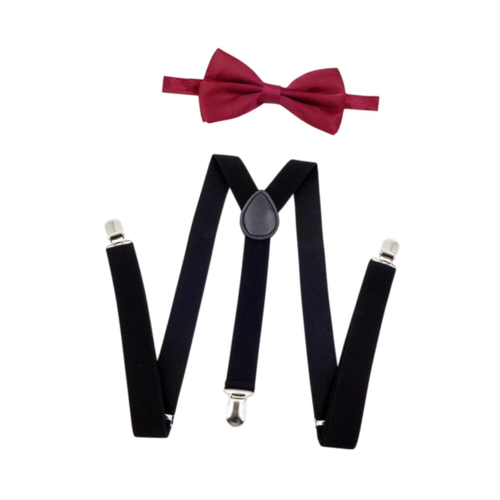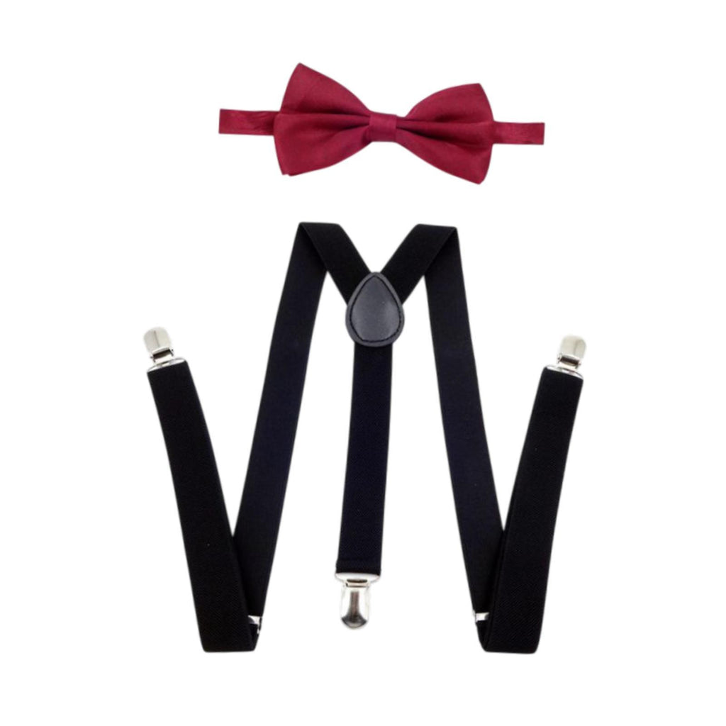 Maxbell Men Suspenders with Bow Tie Y Back Braces for Trousers Formal Wear Halloween Black Dark Red