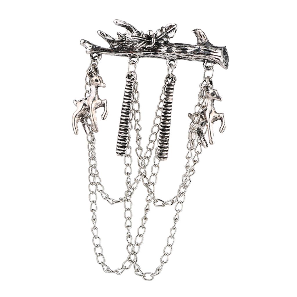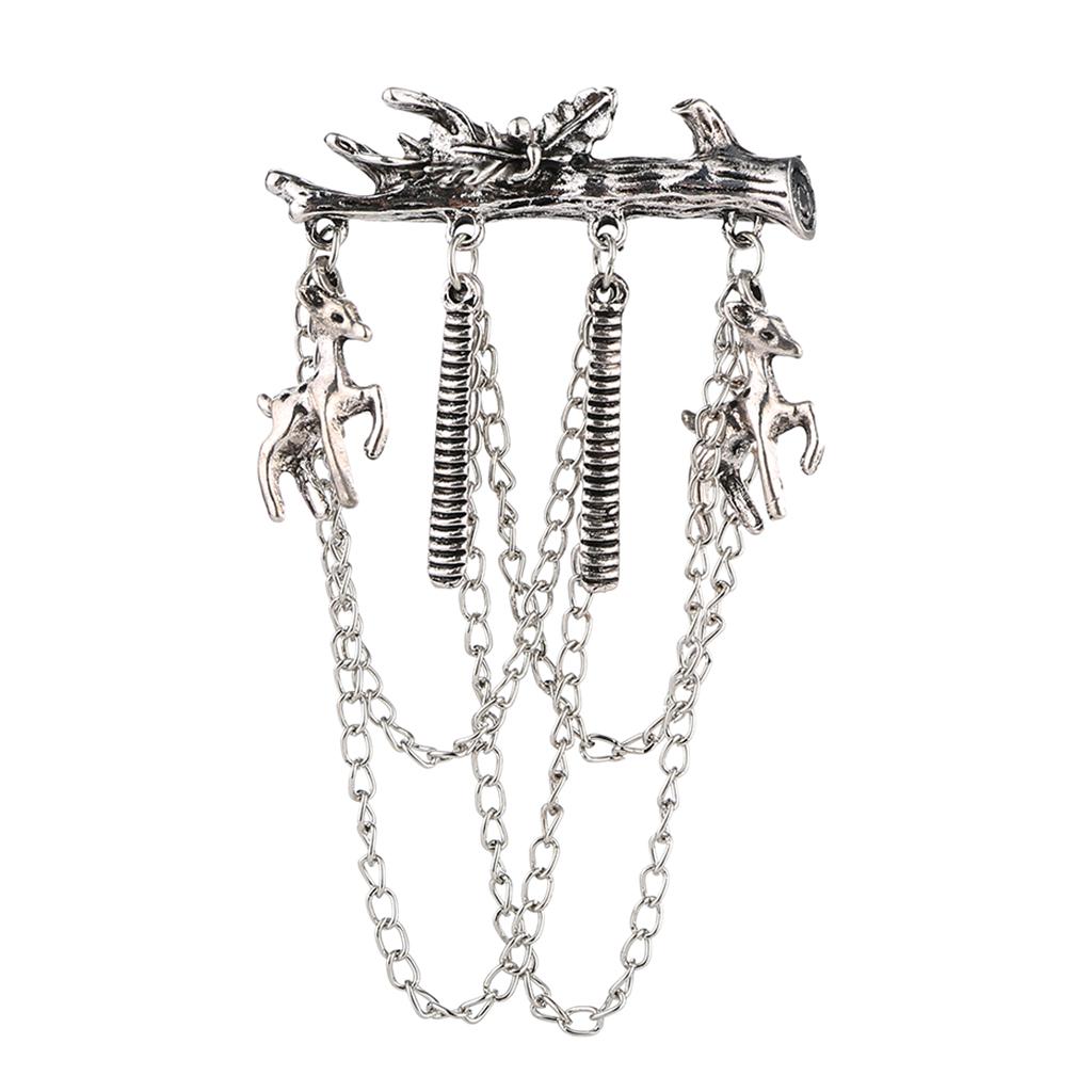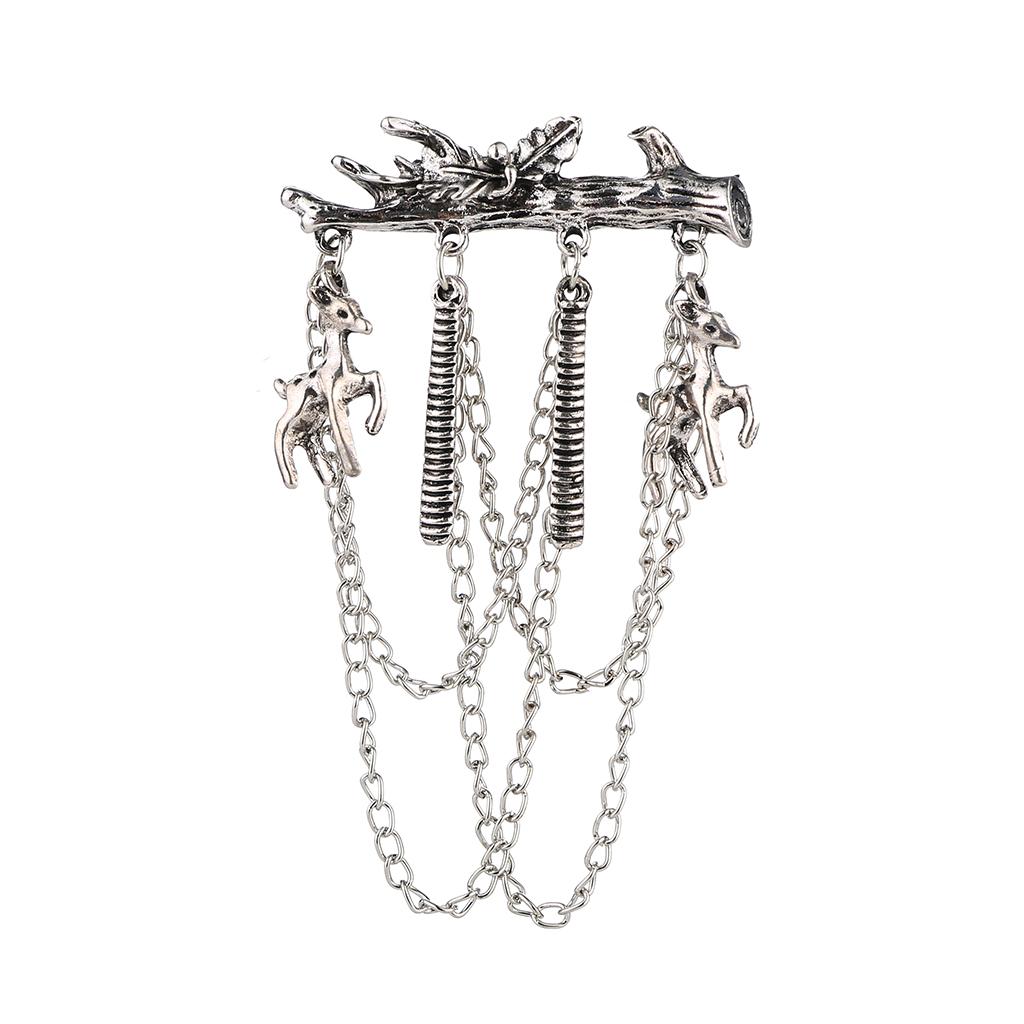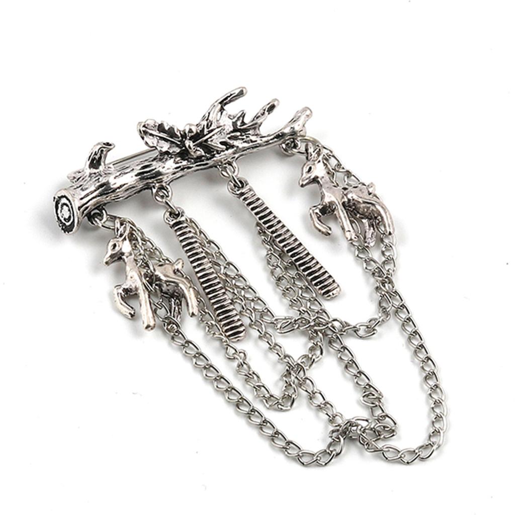 Maxbell Men's Branches with Deer Hanging Chain Brooch Pin Tassels Brooch Pin Silver
