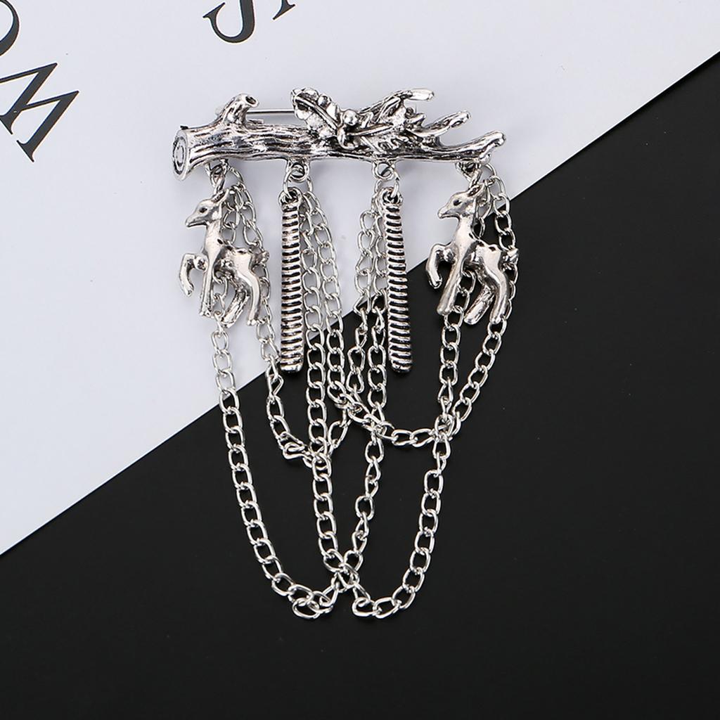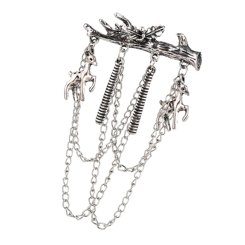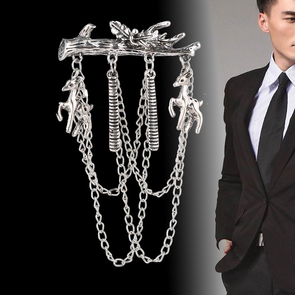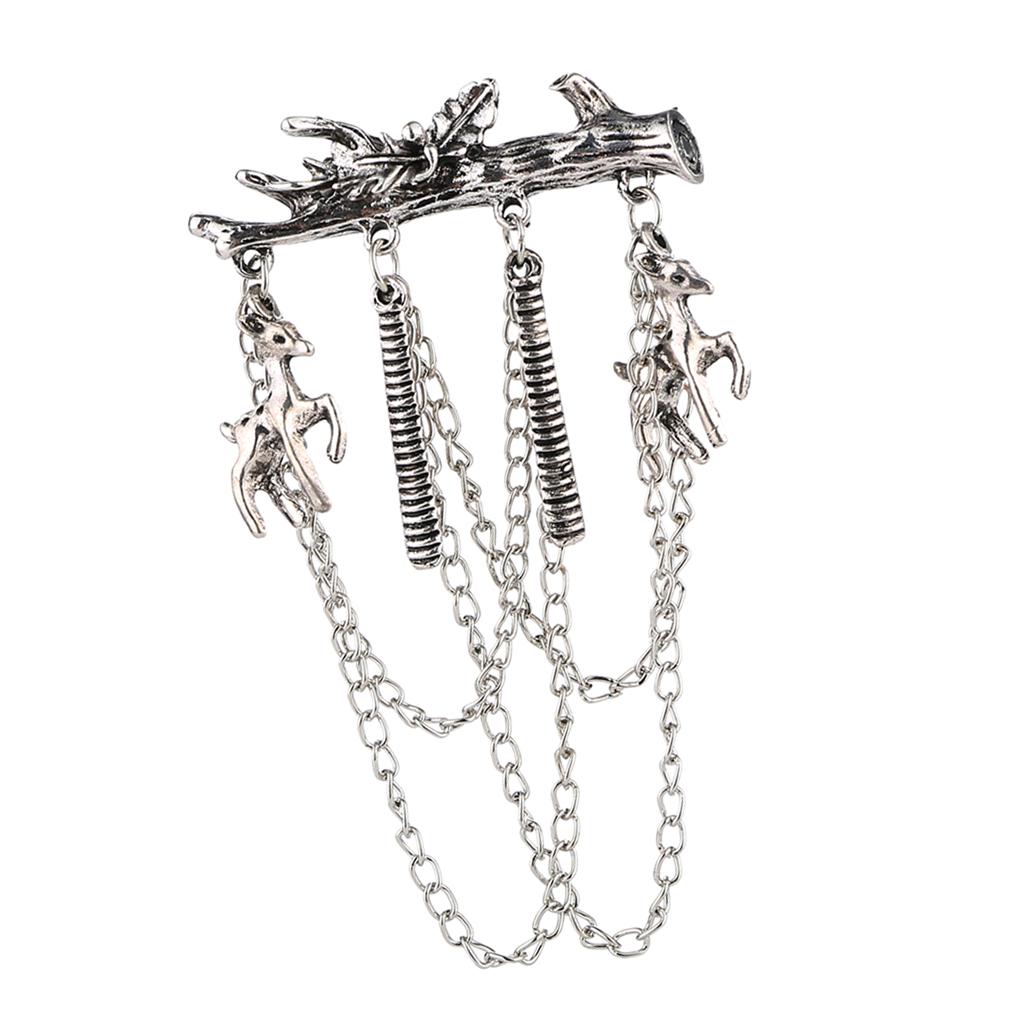 Maxbell Men's Branches with Deer Hanging Chain Brooch Pin Tassels Brooch Pin Silver