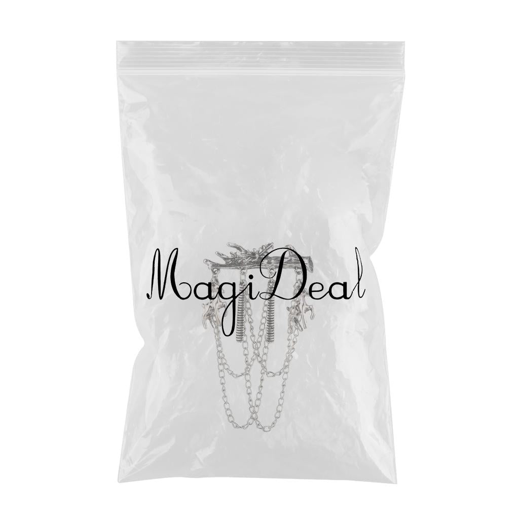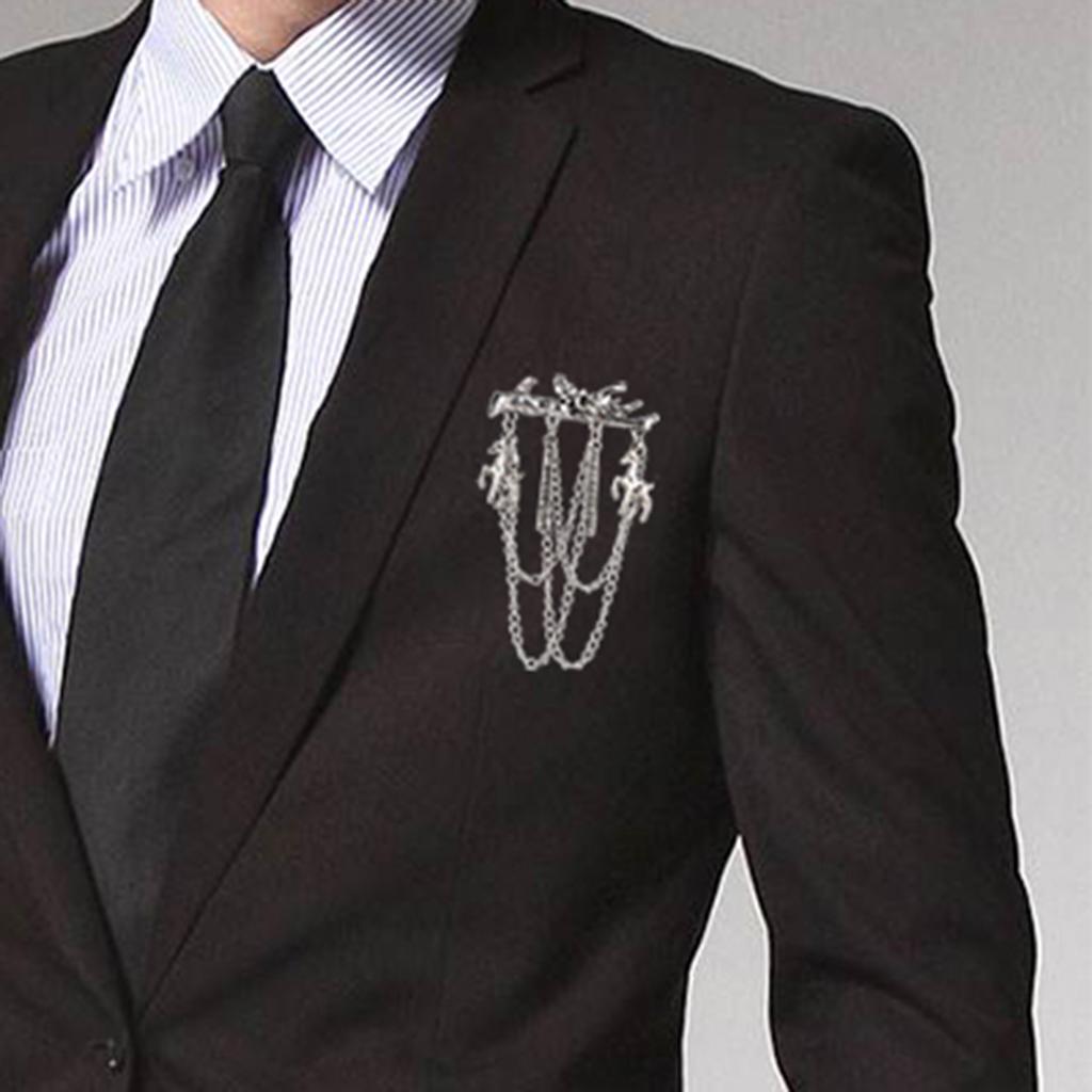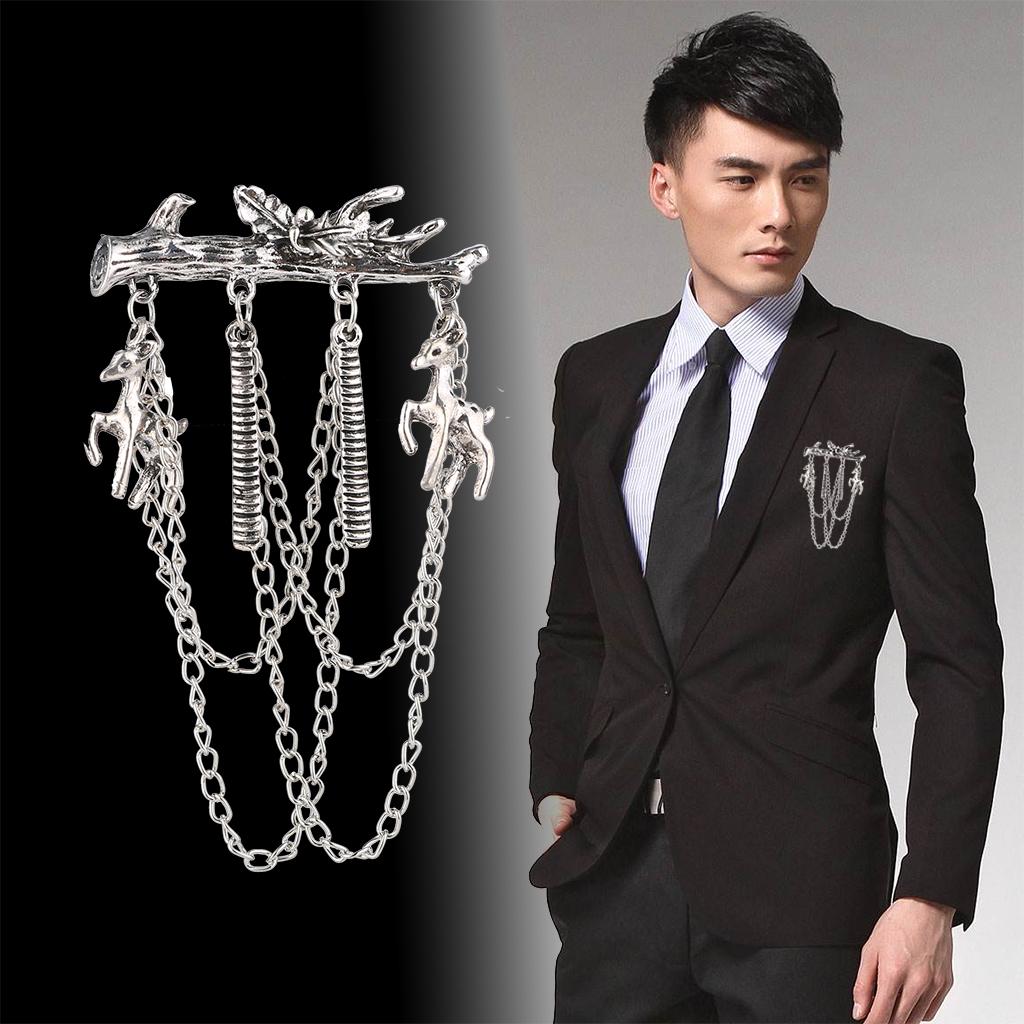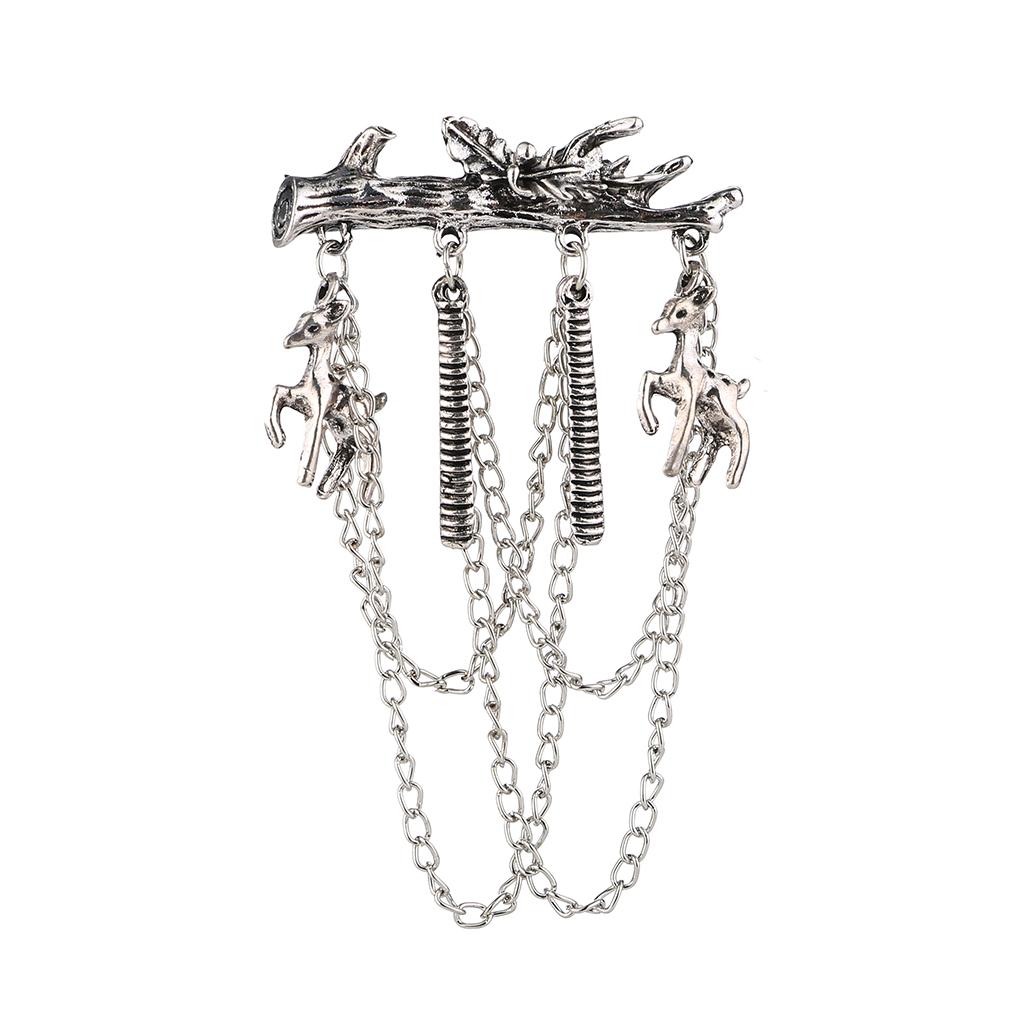 Maxbell Men's Branches with Deer Hanging Chain Brooch Pin Tassels Brooch Pin Silver