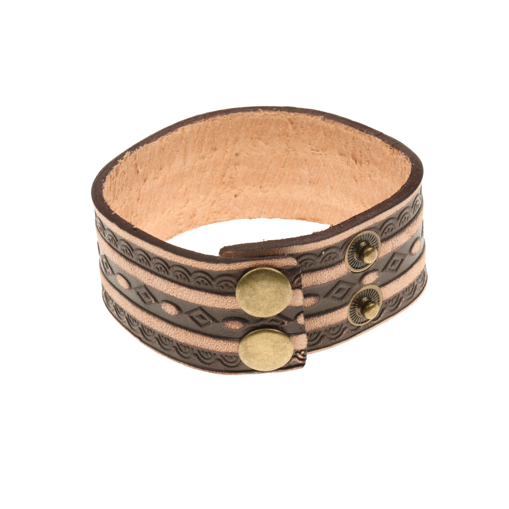 Maxbell Mens Wide Leather Bracelet Rock Punk Wrist Band Strap Belt Cuff Brown
