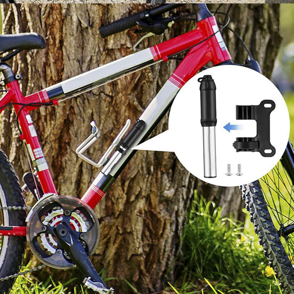 Pump comes with a mounting bracket, the mini pump is held tight that won't out when riding.