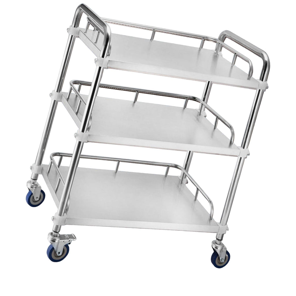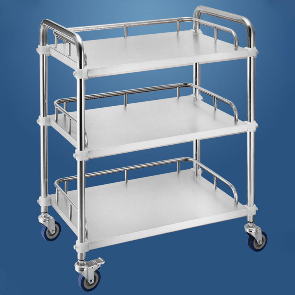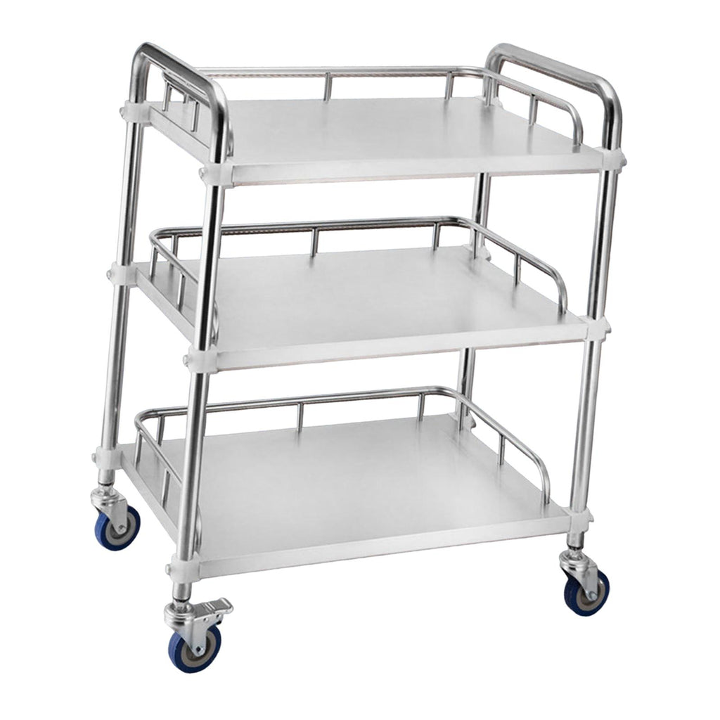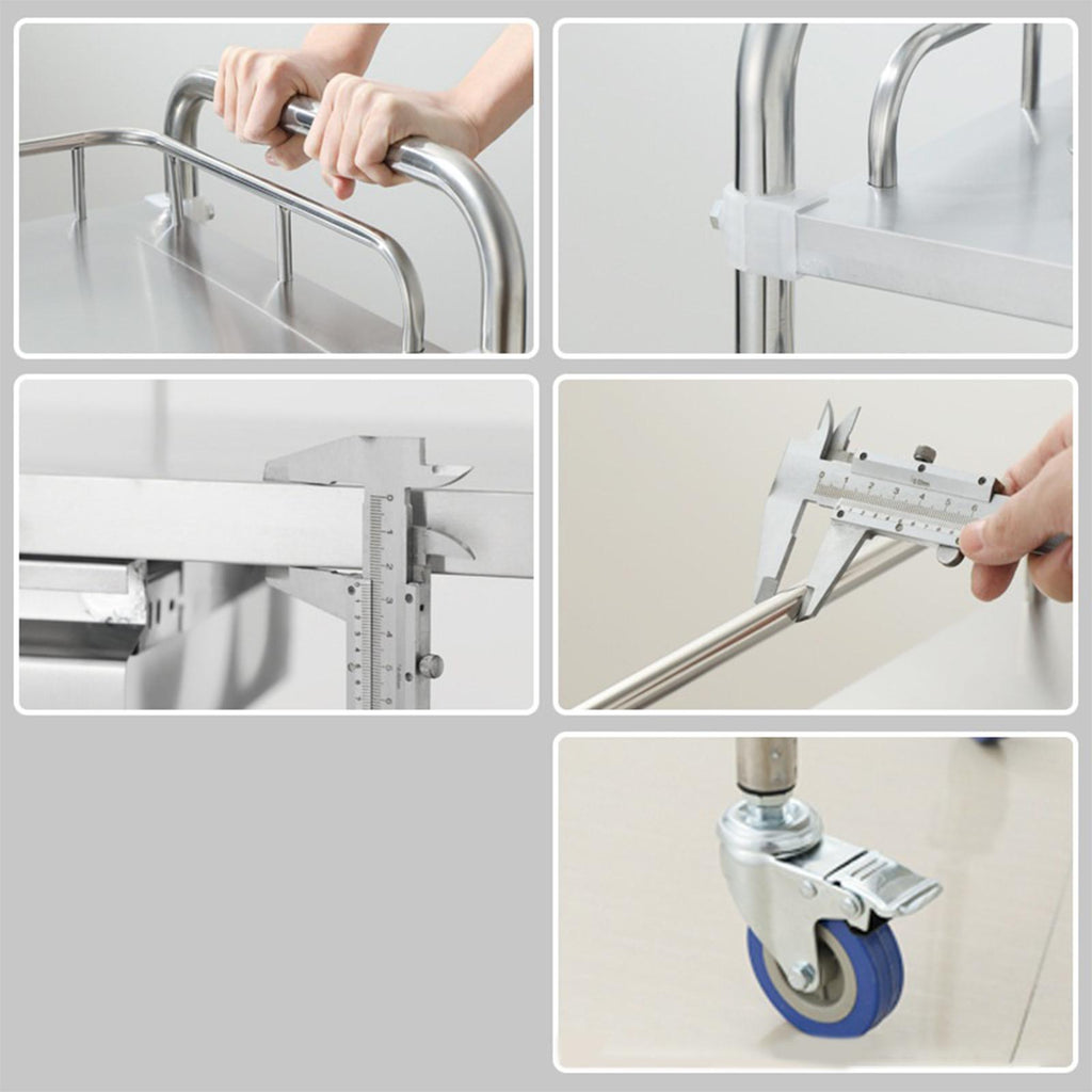 【Material】Utility Cart Lab Serving Cart with 3 Shelves is made of stainless steel, rust resistant and sturdy structure