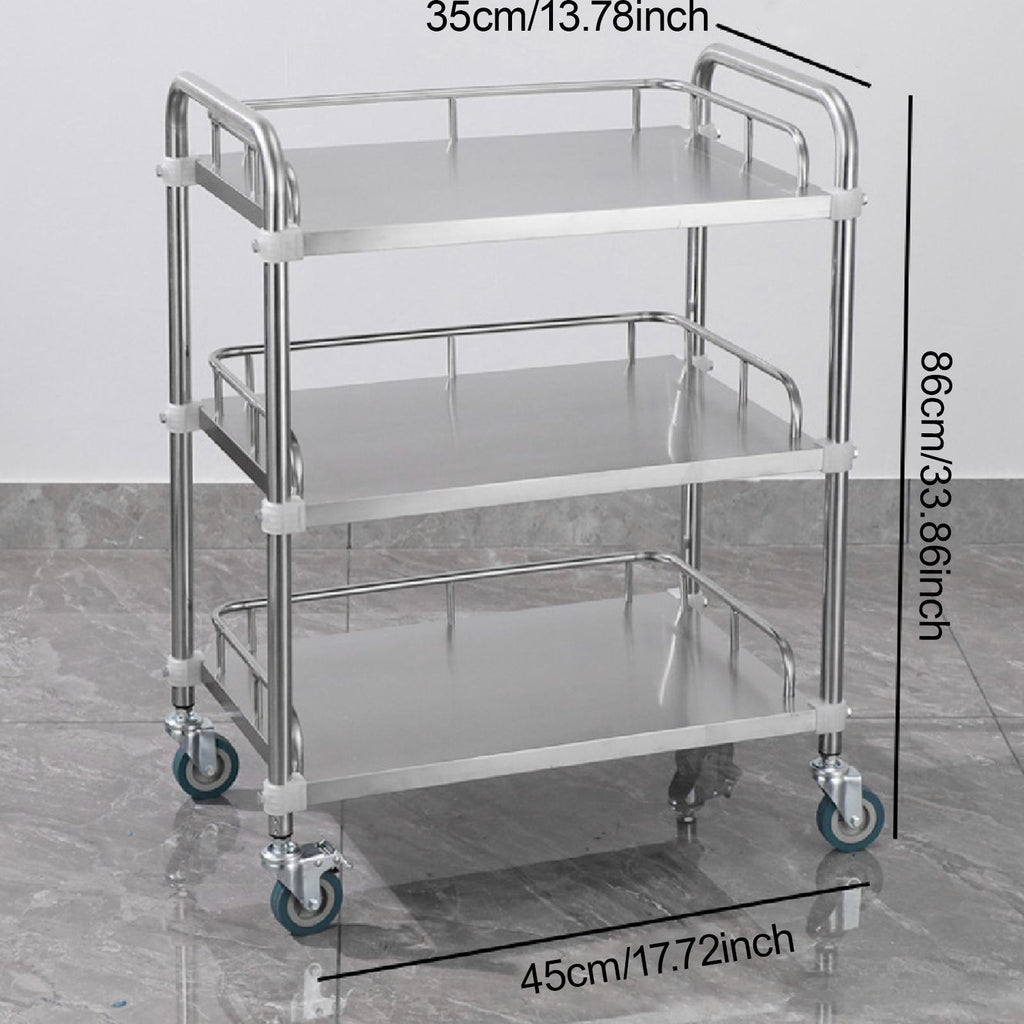 【Size Information】Stainless Steel Lab Rolling Cart (dimensions after assembly) measures approx 45cmx35cmx86cm/17.72inchx13.78inchx33.86inch (Note: DIY Assembly is required)