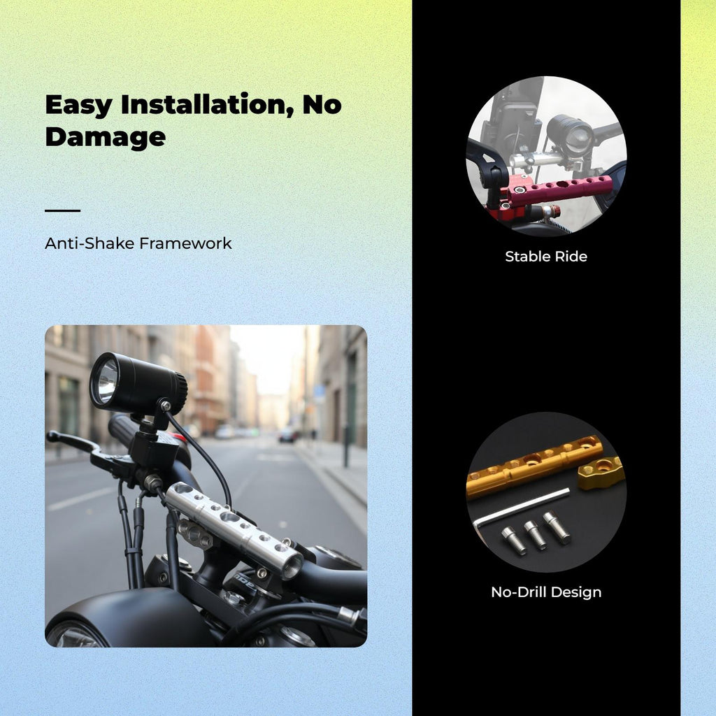 【Multi-Functional Extension Bracket for Motorbikes and 】This versatile handlebar bracket is designed for easy mounting of lamps, side mirror lights, and other accessories, enhancing your riding experience during night rides and common commutes.【Robust Waterproof Construction】Crafted from aluminum alloy and stainless steel, this extension bracket provides durability and waterproof performance for use in all weather conditions.【Easy Installation and Broad Compatibility】The useruser-oriented design enables quick installation on motorbikes and skateboards, making it a convenient enhancement for riders looking for hassle enhancements.【Decorative and Protective Function】In addition to supporting lighting and accessory expansion, it adds a stylish accent to your vehicle while offering additional protection.【perfect for Night Riding and Outdoor Use】Perfect for night riding, outdoor adventures, and common travel, this bracket is an essential accessory for motorbike fans and riders.Specification: