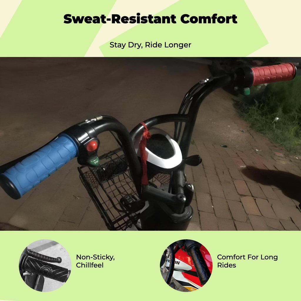 [Sturdy Anti-Slip Motorcycle Handlebar Grip] This universal rubber grip sleeve delivers dependable non-slip performance and sweat protection for motorcycles, electric bikes, scooters, and ATVs, ensuring a and comfortable riding experience in various conditions. [ Soft Rubber Material] Crafted from soft rubber, this handlebar grip cover offers both durability and comfort, helping to hand fatigue during long rides and ensuring a secure hold even in hot weather. [Universal Compatibility for a Range of Vehicles] Suitable for most motorcycles, bicycles, and two-wheelers, this grip sleeve accommodates most common handlebars and brake levers, making it a versatile enhancement for various vehicle designs. [Practical and Cost-Effective Accessory] Engineered for easy installation and long use, this non-sponge grip sleeve provides an affordable solution to protect your handlebars and improve your riding experience. [Sweat-Resistant and Easy to Clean] With its sweat-resistant design, your hands stay dry and comfortable, and the rubber material allows for easy cleaning and maintenance—perfect for common commutes and summer rides.Specification: