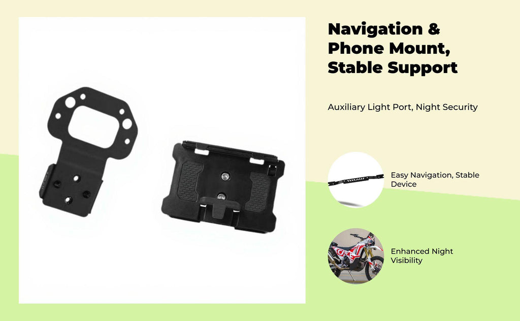 【Multifunctional Motorcycle Tail Mount for KY450 Trail】This motorcycle tail mount is specially designed for the KY450 Trail, providing a versatile solution as a navigation holder, lighting bracket, and auxiliary light support, perfect for outdoor riding and customization needs.【Robust and sturdy Construction】Made from premium materials, this mount offers exceptional durability, is waterresistant, and dependable for all seasons, ensuring long-term use and protecting your motorcycle accessories.【Easy Installation and Stable Fit】Engineered for quick setup and a stable-fit, the mount features a vibration-resistant, slipresistant, and sturdyduty design to keep your devices stable while riding.【Wide Compatibility and Practical Design】Suitable for handlebars with a diameter of 15-40mm and devices between 4.7-6.8 inches, this holder is compatible with a variety of navigation and lighting accessories to enhance your riding experience.【Comprehensive Protection for Outdoor Use】With silicone pads and a sturdy frame, this tail mount provides effective shock absorption and protection for your devices, making it perfect for outdoor adventures and everyday commuting.Specification: