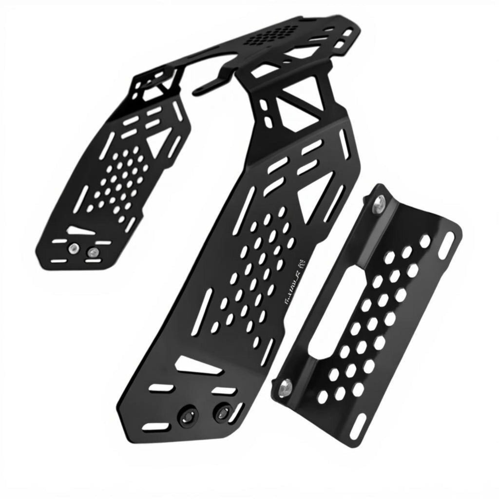 【Multifunctional Motorcycle Tail Mount for KY450 Trail】This motorcycle tail mount is specially designed for the KY450 Trail, providing a versatile solution as a navigation holder, lighting bracket, and auxiliary light support, perfect for outdoor riding and customization needs.【Robust and sturdy Construction】Made from premium materials, this mount offers exceptional durability, is waterresistant, and dependable for all seasons, ensuring long-term use and protecting your motorcycle accessories.【Easy Installation and Stable Fit】Engineered for quick setup and a stable-fit, the mount features a vibration-resistant, slipresistant, and sturdyduty design to keep your devices stable while riding.【Wide Compatibility and Practical Design】Suitable for handlebars with a diameter of 15-40mm and devices between 4.7-6.8 inches, this holder is compatible with a variety of navigation and lighting accessories to enhance your riding experience.【Comprehensive Protection for Outdoor Use】With silicone pads and a sturdy frame, this tail mount provides effective shock absorption and protection for your devices, making it perfect for outdoor adventures and everyday commuting.Specification: