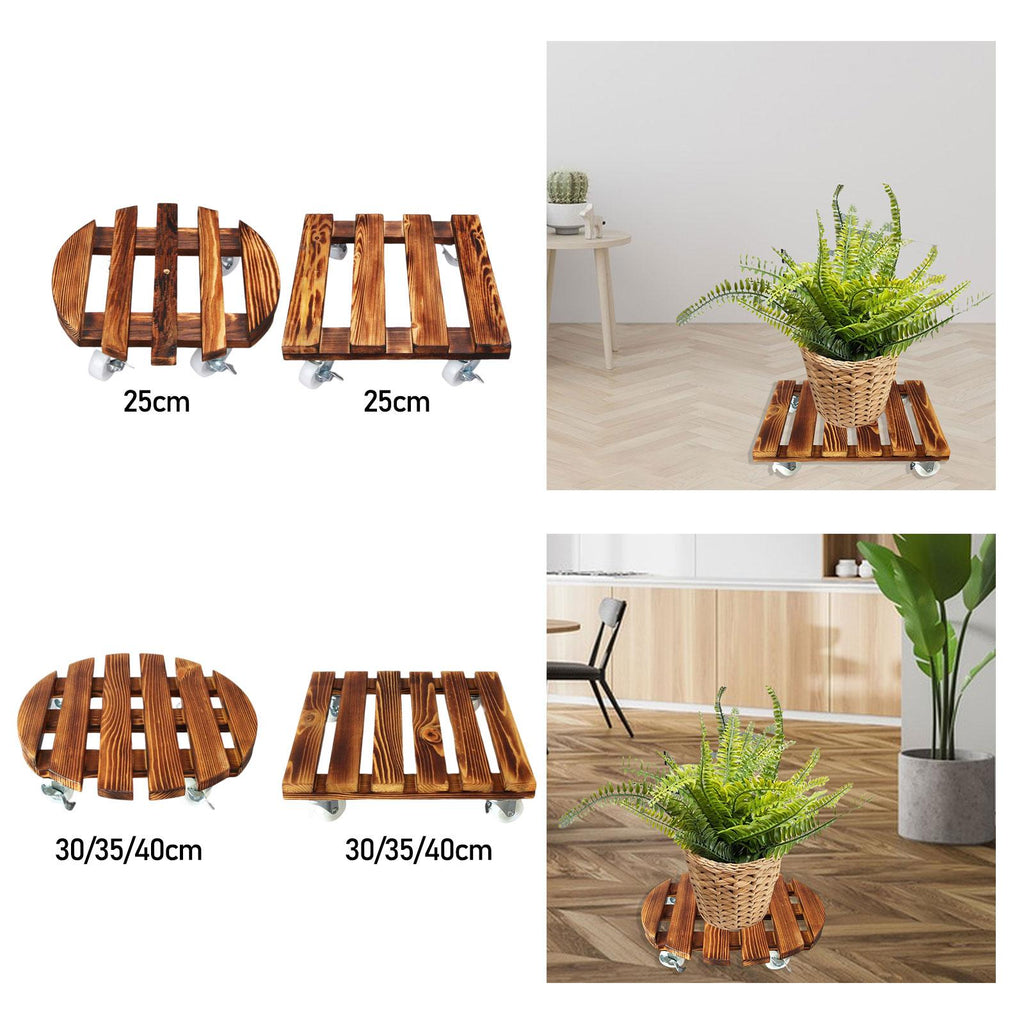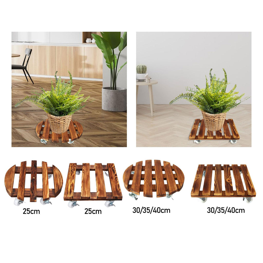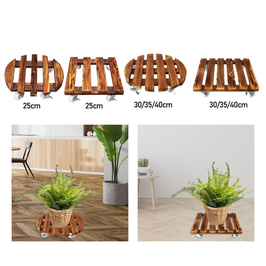 Maxbell Movable Wooden Flowerpot Rack with Lockable Brake Rolling Caster for Corner Round 25cm