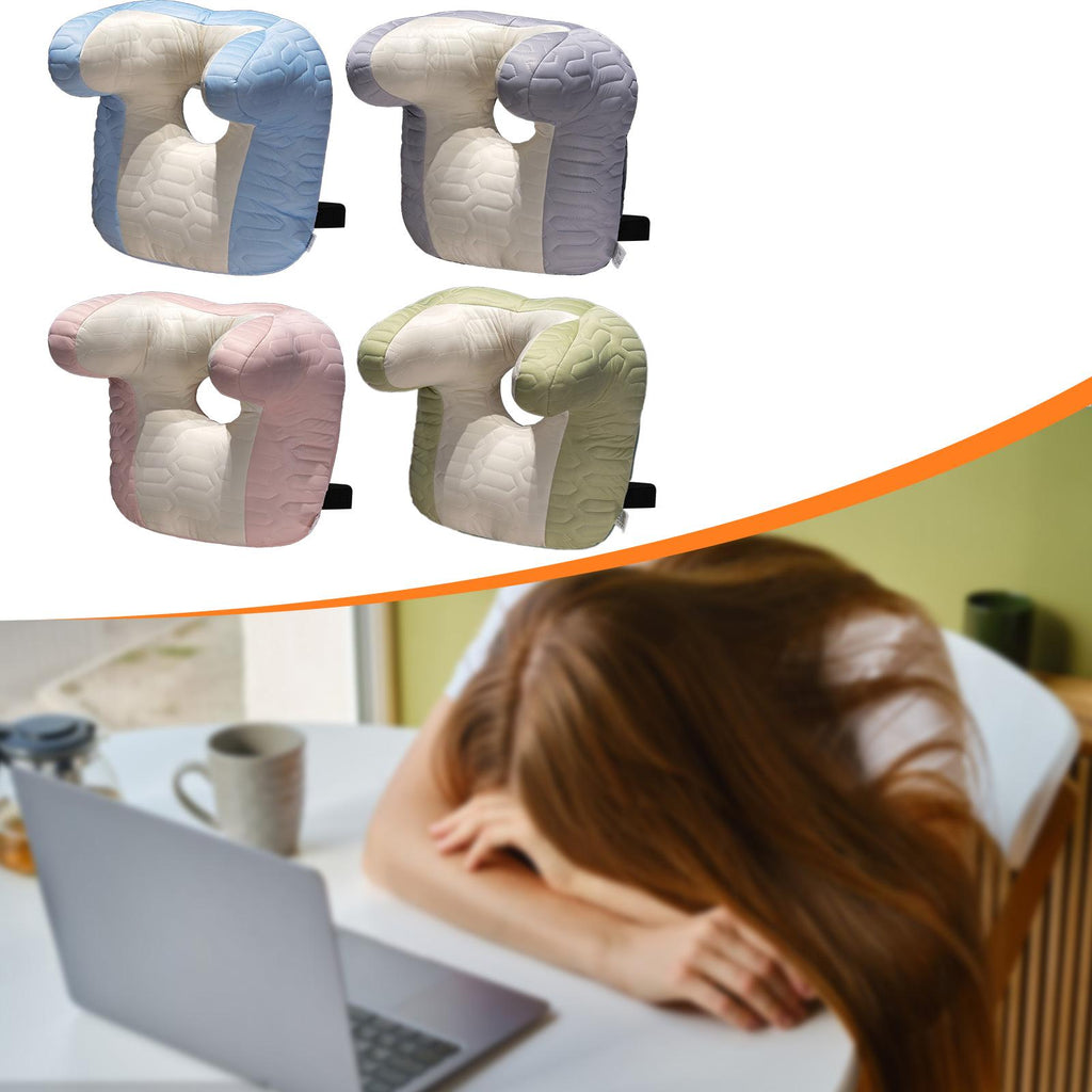 【Ergonomic U Shaped Design】: This napping pillow features a U shaped support that keeps your head stable whether you're lying on your side or back. Its zoned design provides comprehensive support for your head, neck, and shoulders, ensuring a comfortable rest without any disturbances