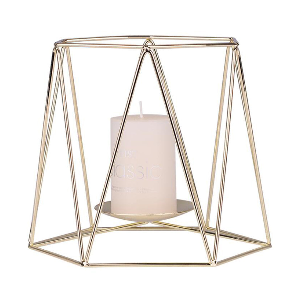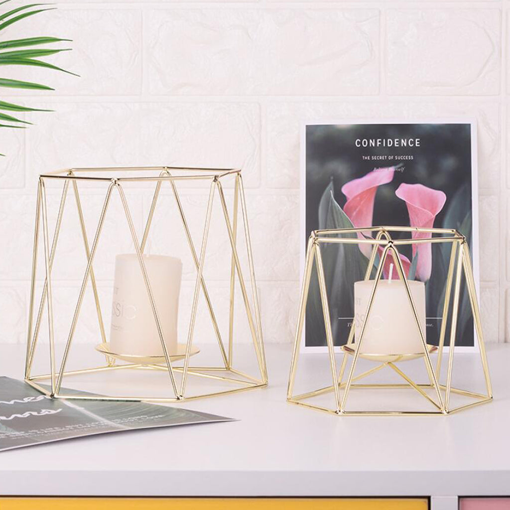 Nordic hollow 3D geometric candle holder, home tabletop centerpiece.