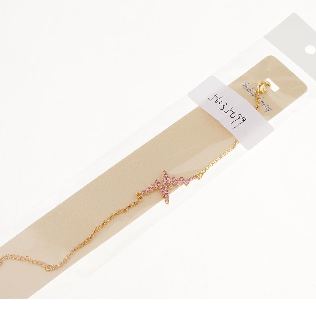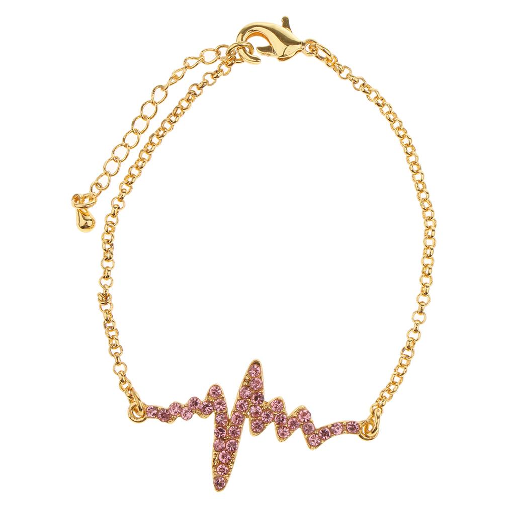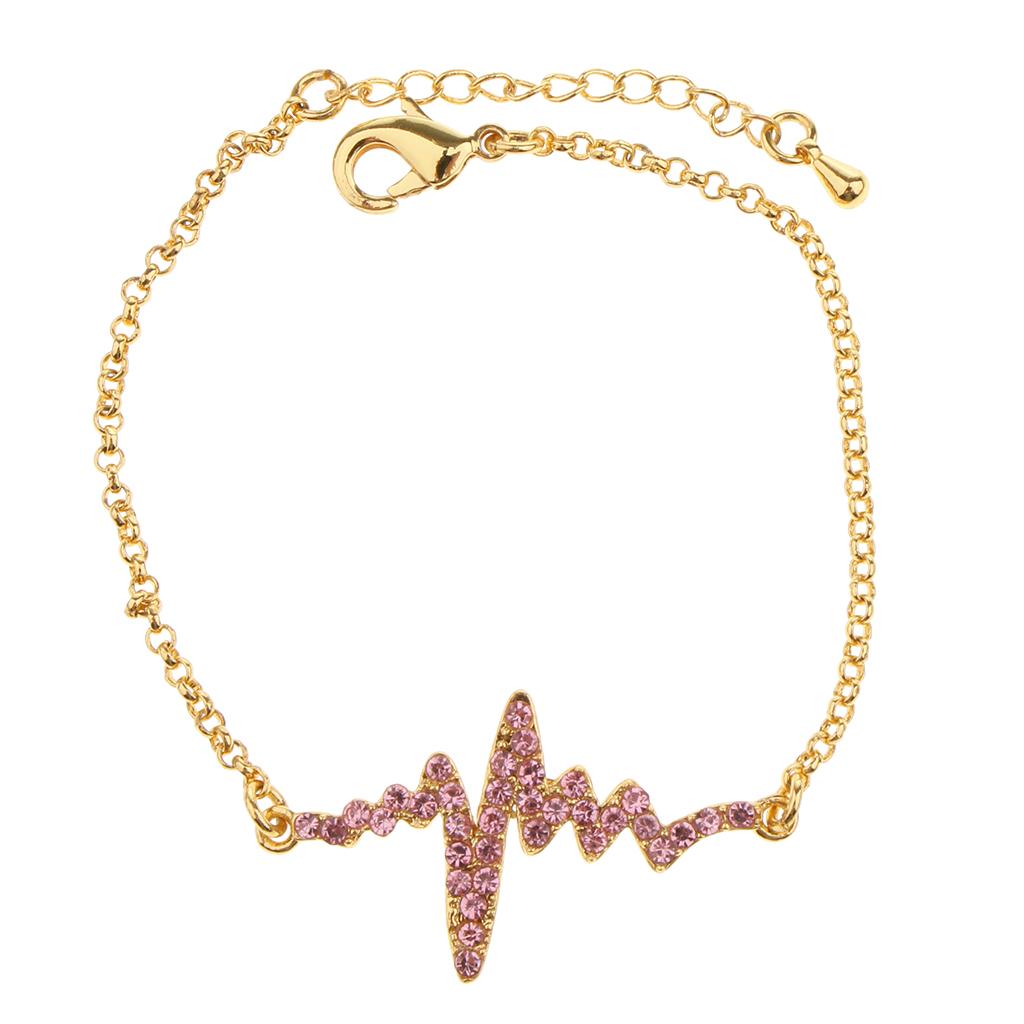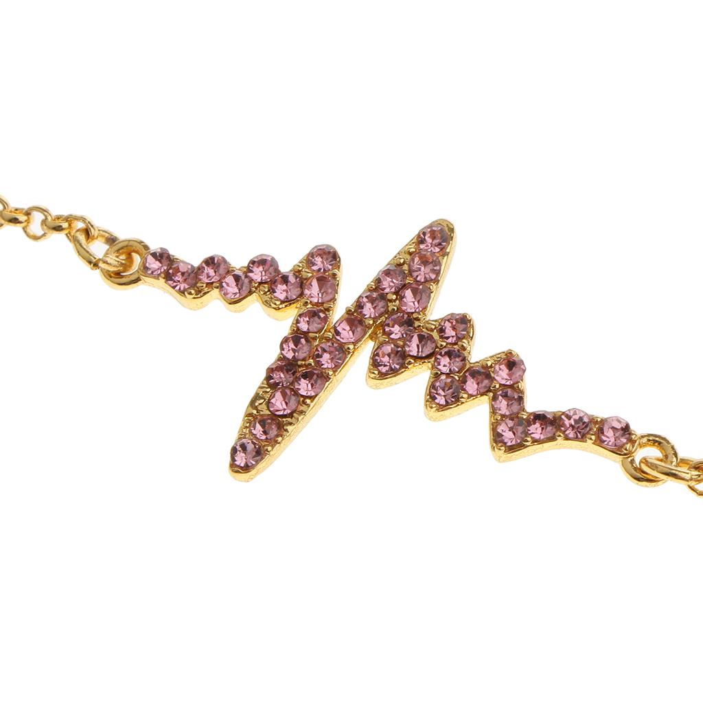 Maxbell Novelty Heartbeat Bracelet Bangle Unisex Bangle Gold Chain Pink Crystal