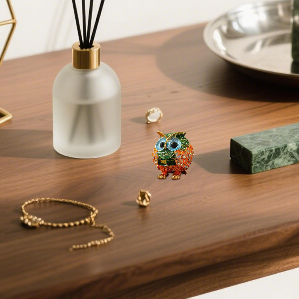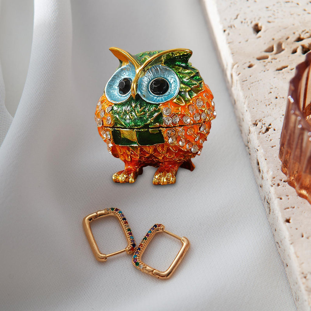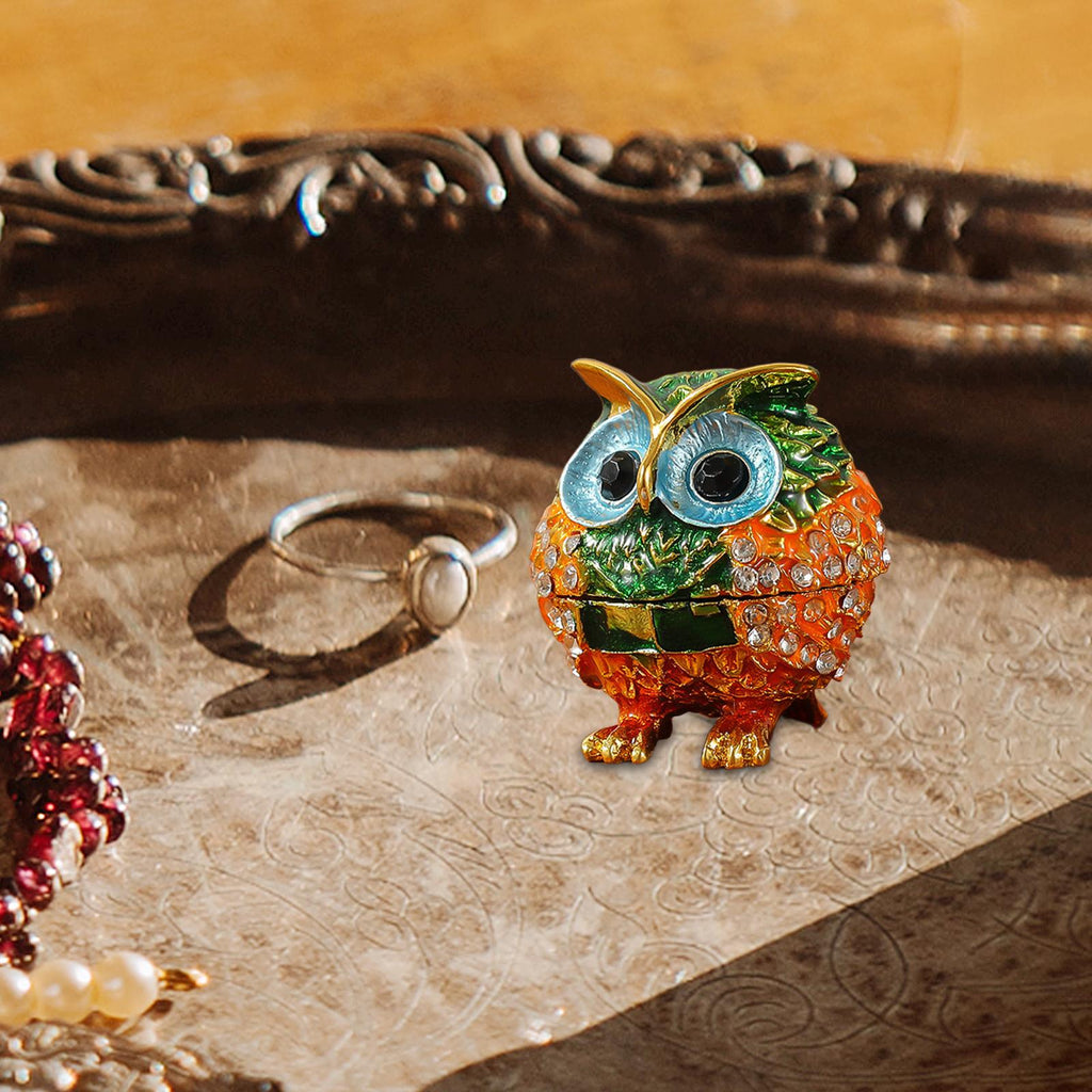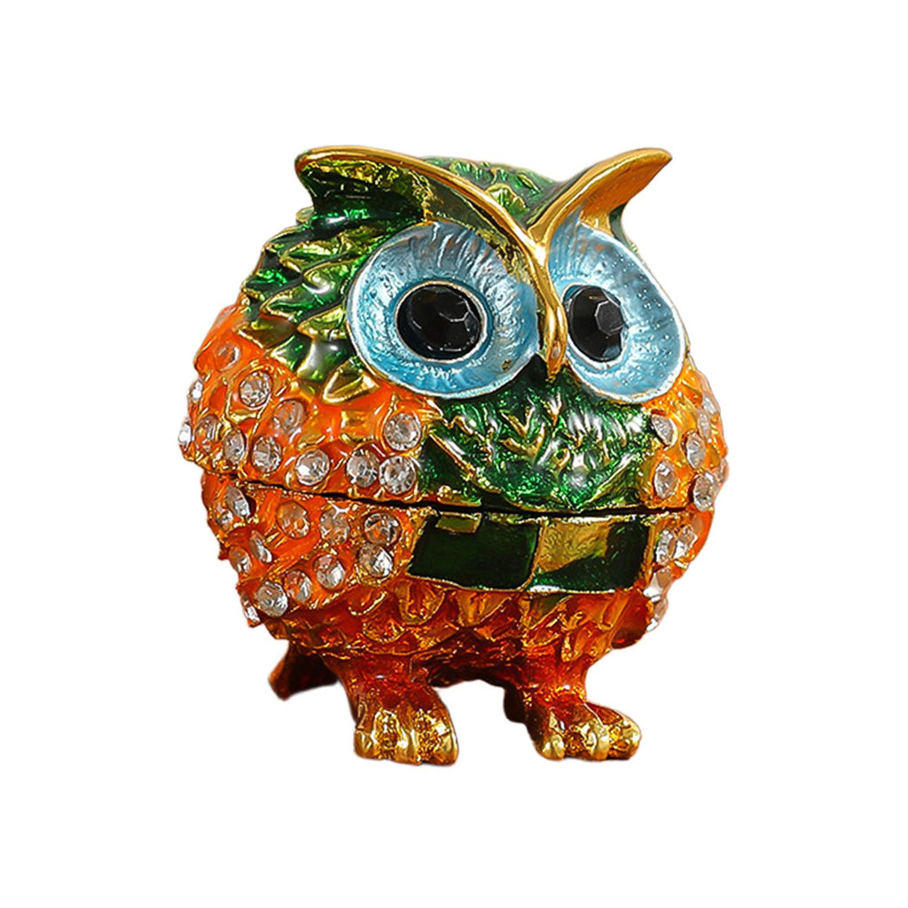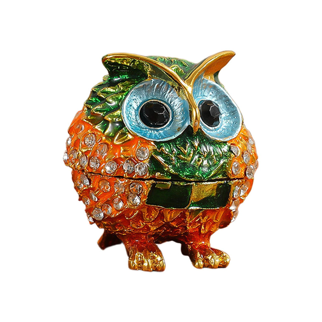 Owl Trinket Box Animal Ornament Jewelry Box for Bracelets Necklaces Pendants Green Orange