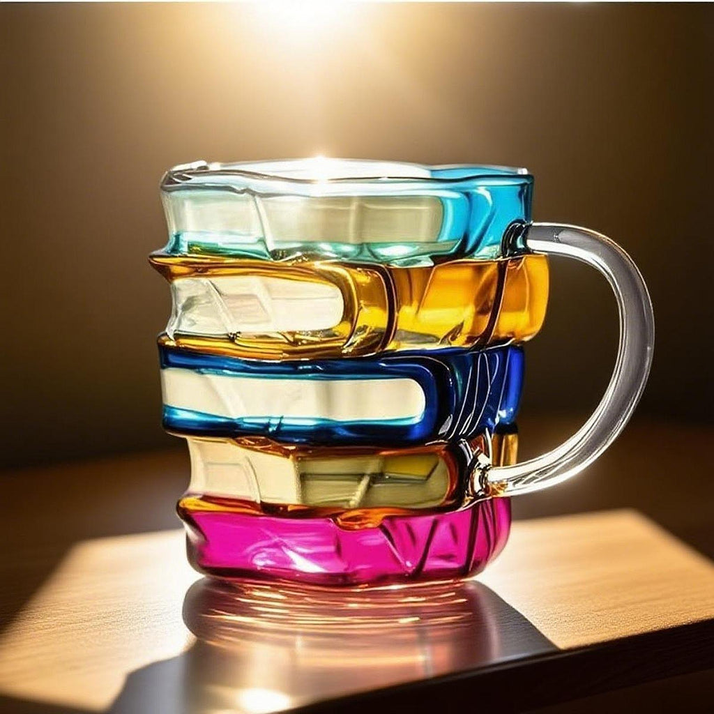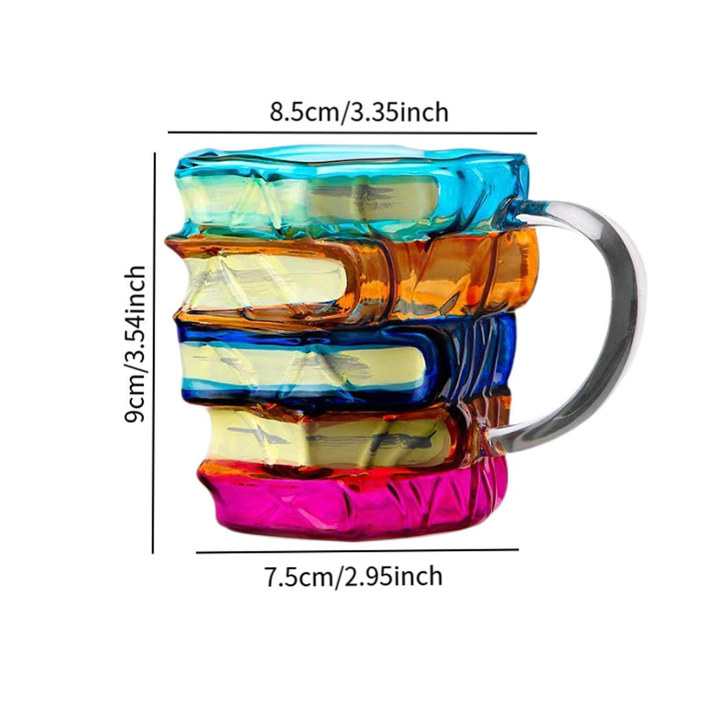 【Stunning 3D Book Design】: This hand painted glass mug features a stackable book art design, making it a unique decorative piece for book lovers, writers, and librarians. It's great for home or office use and makes a thoughtful gift