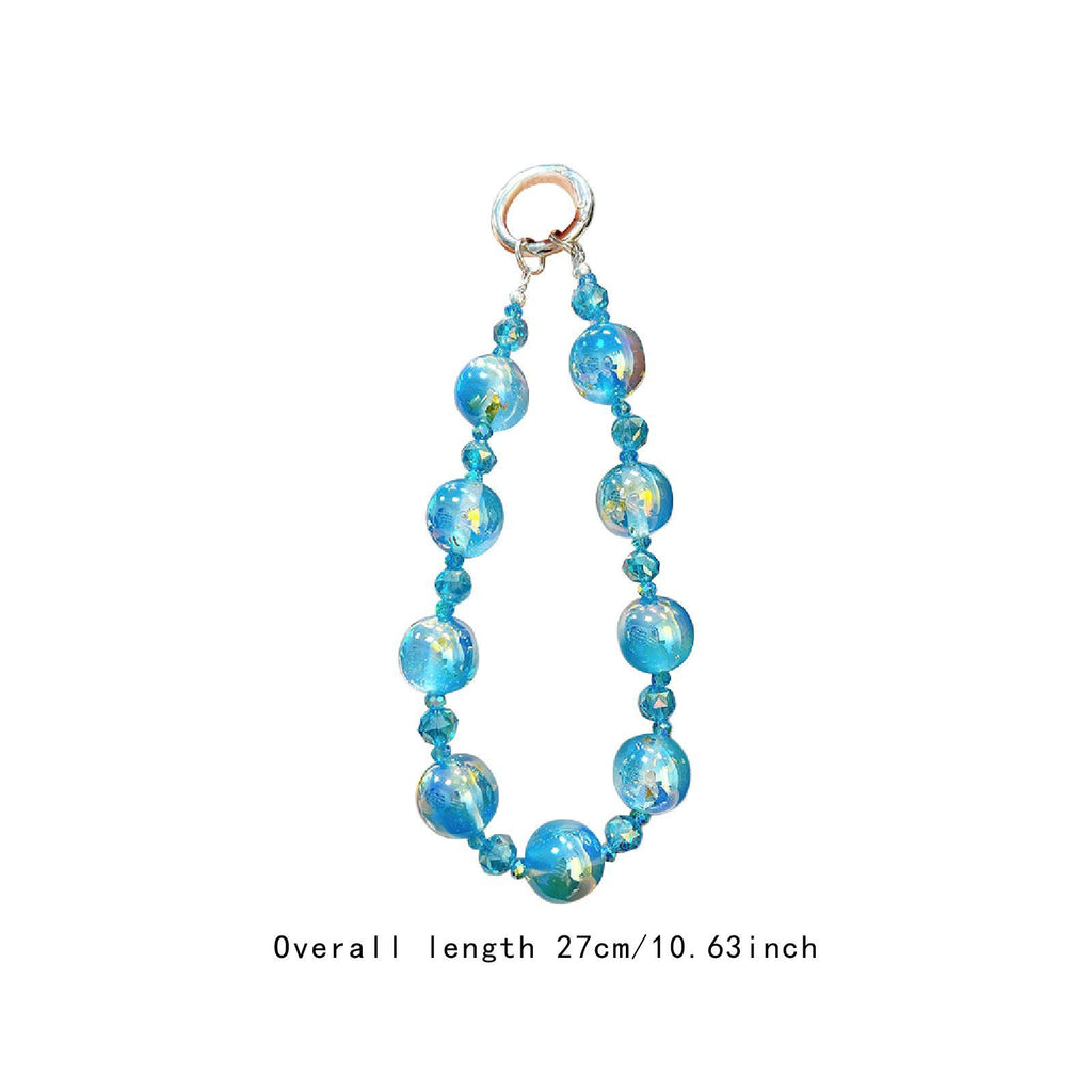 Maxbell Phone Charm Strap Ornament Fashion Phone Accessories Pendant Beaded Bracelet Blue